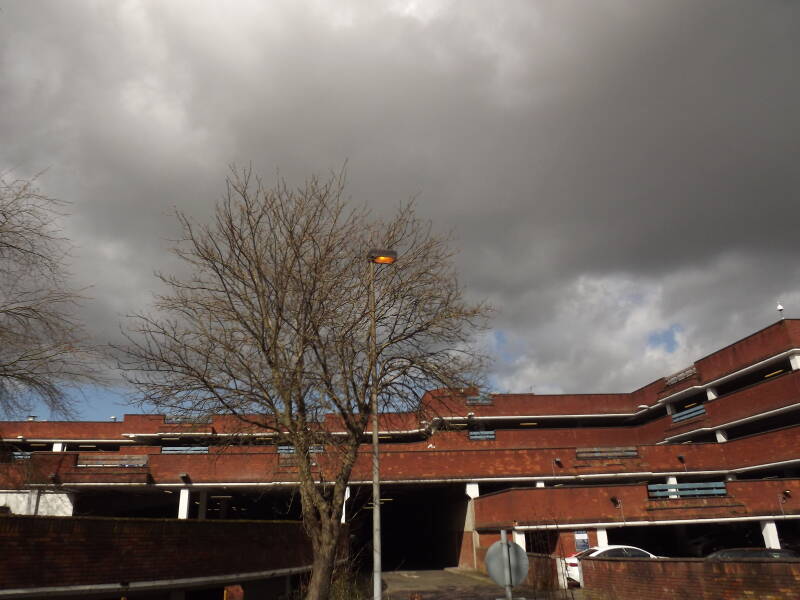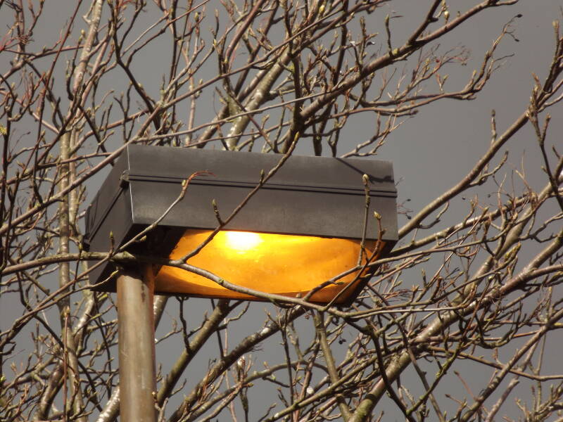 They run what I believe to be 250W SON, located on the exit ramp of Ankerside Car Park. The first example is day-burning, giving a stark, yet cosy contrast to the stormy skies seen behind it.