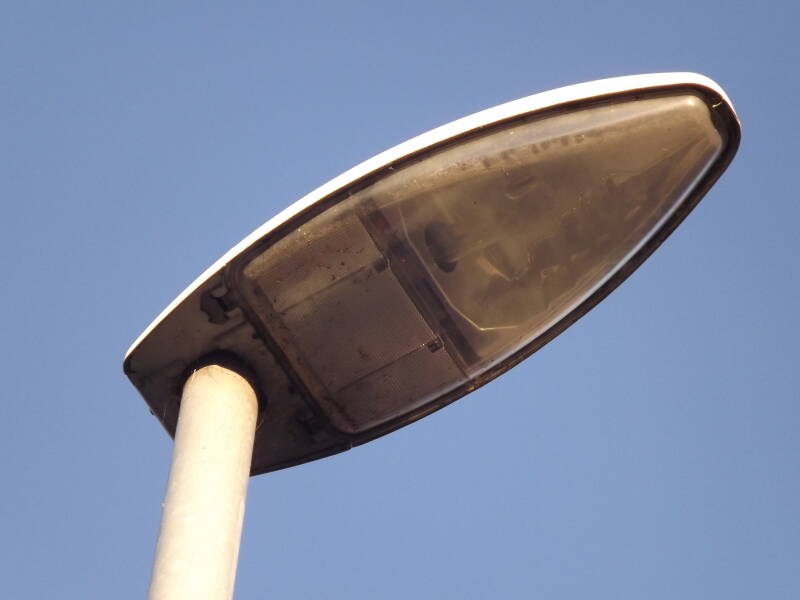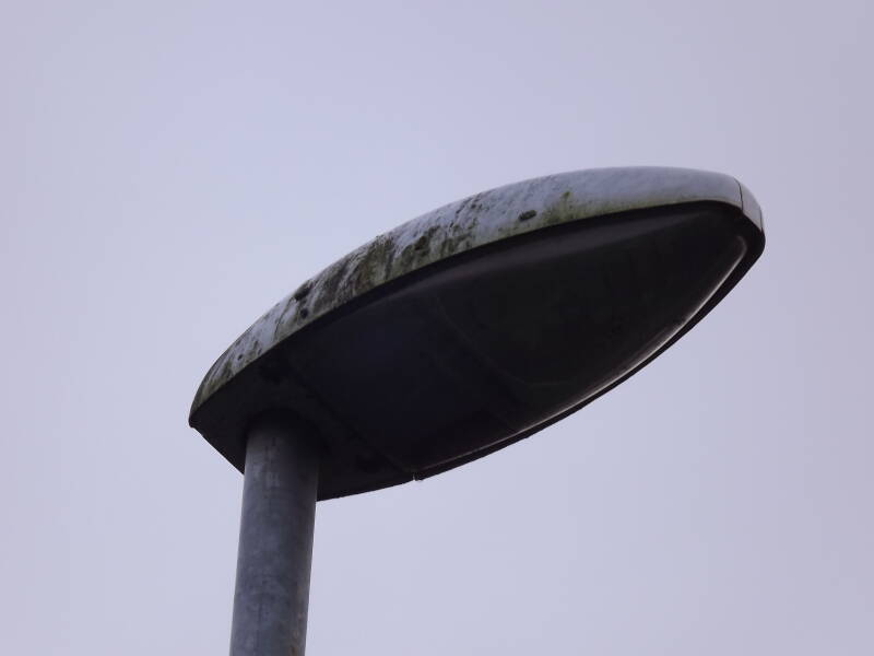 From this angle you can see the SON 70W lamp inside, however, it doesn't work. It leaves the street in perpetual darkness for the long winter nights.