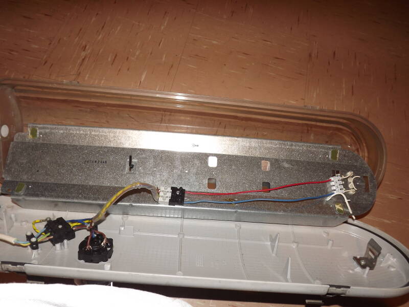 The LED retrofit lamp is installed inside. A cable-tie needed to be used to keep the lamp steady as the old lamp-support had crumbled with the heat.