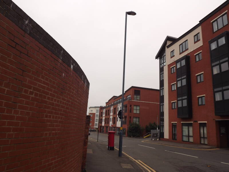 There are more 8m columns with curved outreach brackets, though these are not hinged. Also extant are URBIS Sapphire 2s mounted on right-angled outreach brackets.