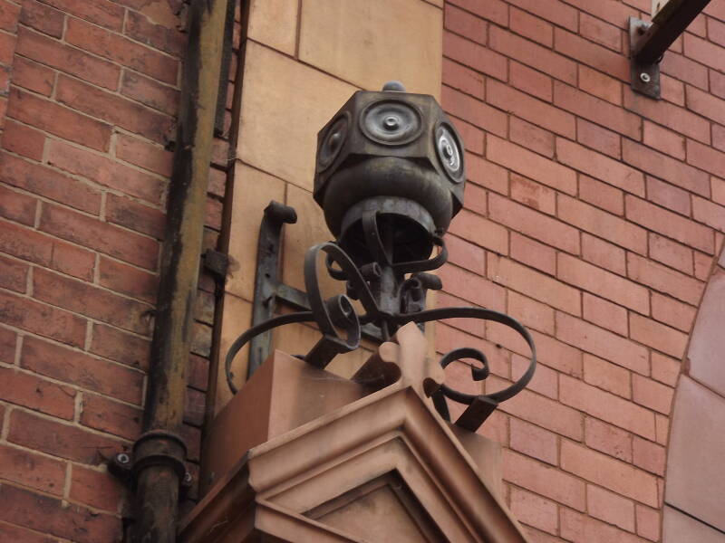 These mysterious wall-mounted lanterns are located behind the Allison Street bus stop (DS1). They resemble railway oil lamps, but they have since been electrified, and now run regular CFL lamps. There are two in total, both in decent condition. Their brackets look incredibly ornate!