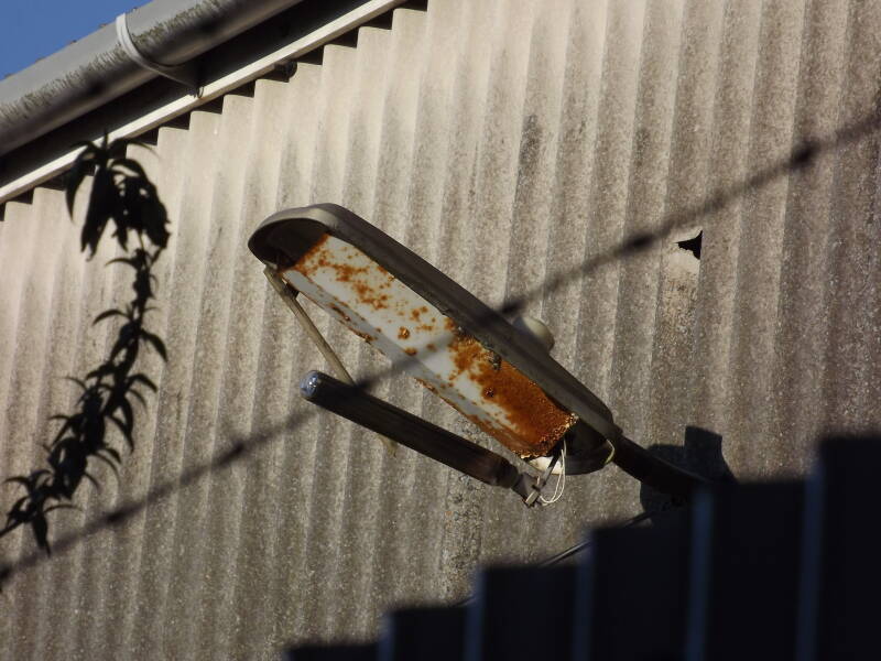 Rugby's Newbold Footpath provides an excellent view of some surviving installations inside of GE Power, Rugby. Visible first are some pretty unremarkable (Tamlite?) PL-S bulkheads. Many of them are smashed to bits, having been completely forgotten about by the site that owns them.