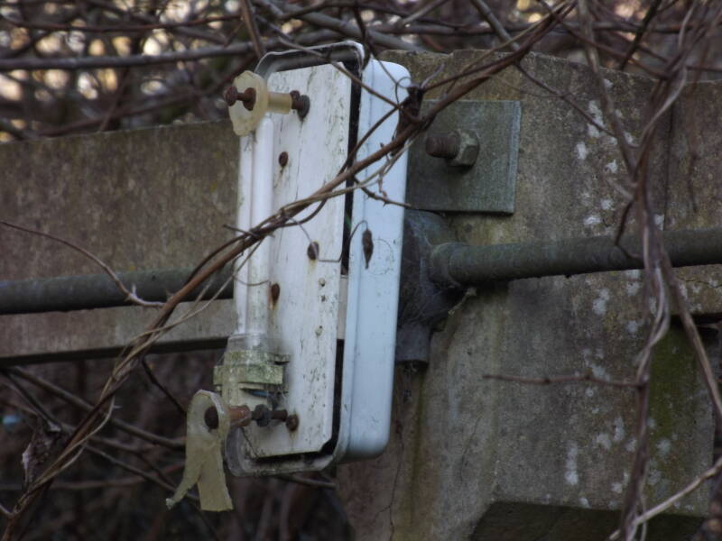 A Little further along is a derelict (but still intact) GEC security Nightwatch (Z9538). Despite having a cell socket, no cell is installed, suggesting this was manually-switched.