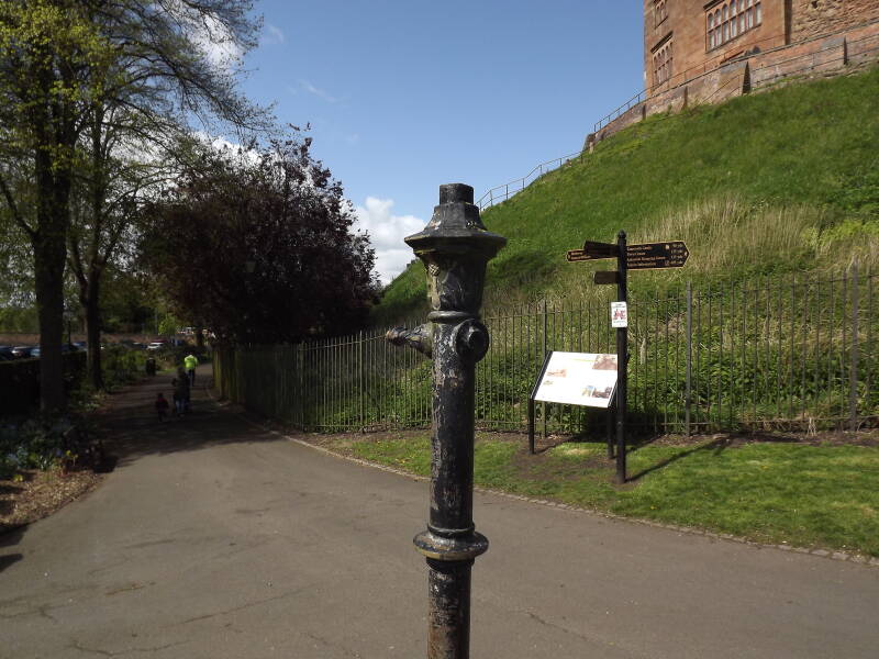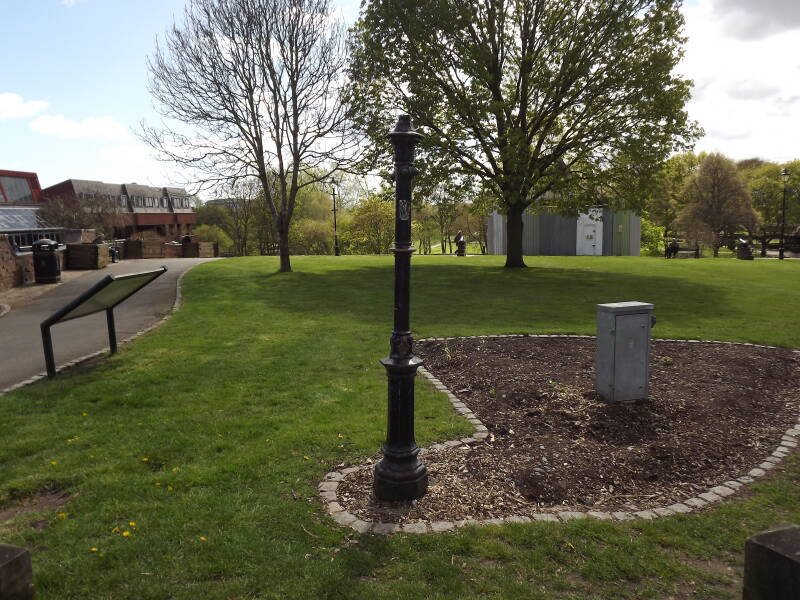 These beautiful installations are located in Tamworth Castle grounds. 3m cast-iron columns made by Lion Foundry which would have originally supported gas lanterns. These lanterns can be seen HERE in the Town's historical imagery, and these likely would have dated back to the late 1880s or early 1890s. These took a while for me to notice properly, as they blend in with the scenery and are generally easy to walk right by.