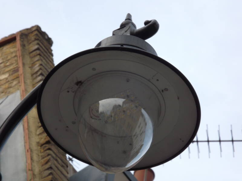 Along Lower Marsh are several cast-iron columns which previously supported Small Urbis St. Giles lanterns, but nowadays are fitted with new brackets and Small Birkdale lanterns.
