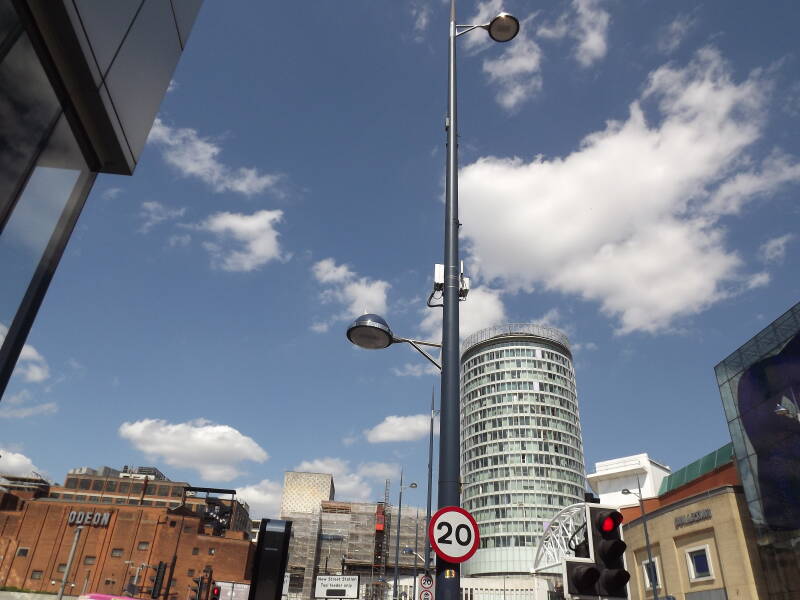 Column 4 of Smallbrook Queensway, Birmingham is pictured below. 10m columns line the road, with a Candela Portsmouth situated at the top (10m), and 5m to light the footpath.
