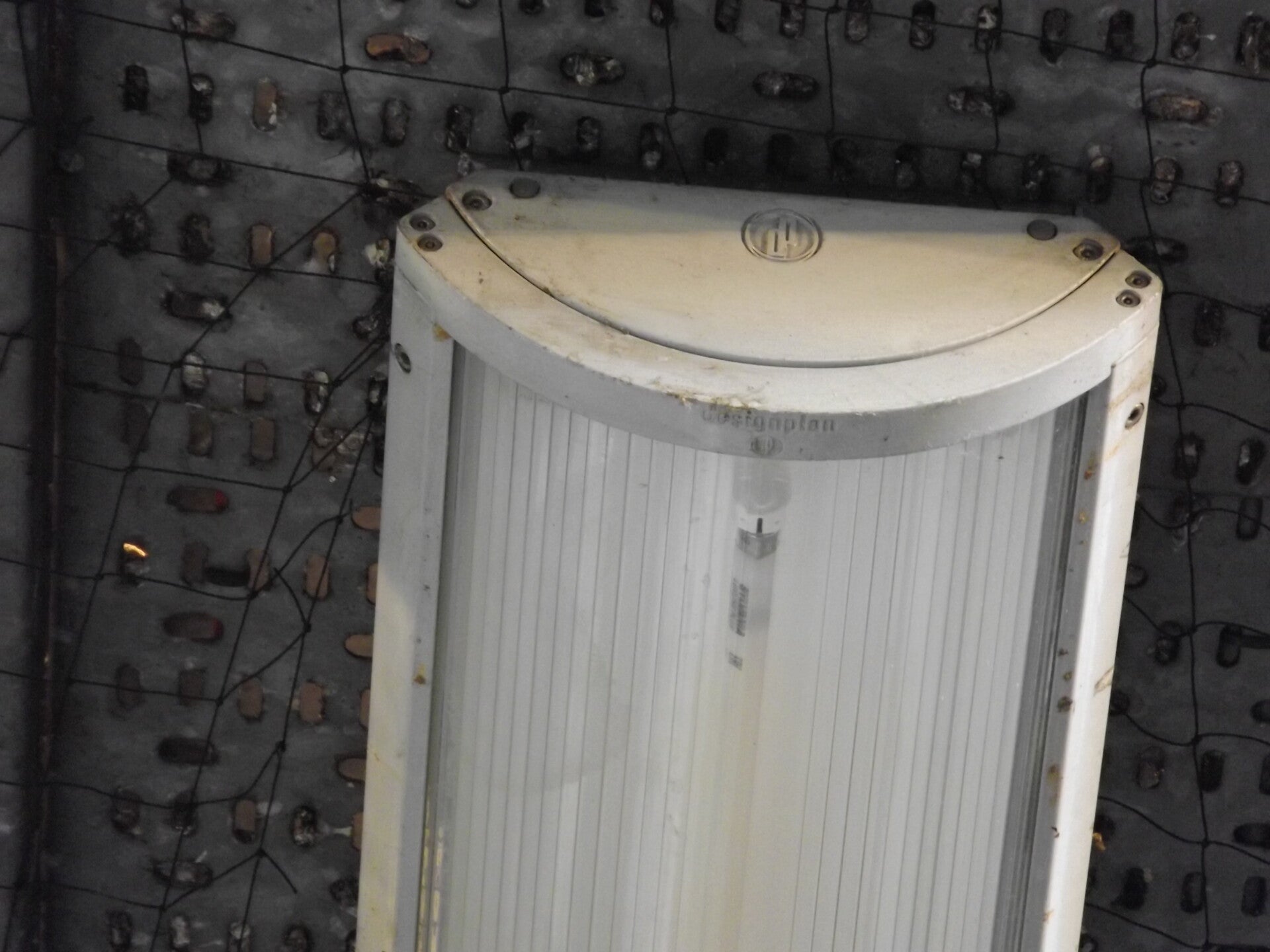 Due to this luminaire being designed for areas of transport, their inclusion in Derby Station was no surprise. The ones here run fluorescent lamps.