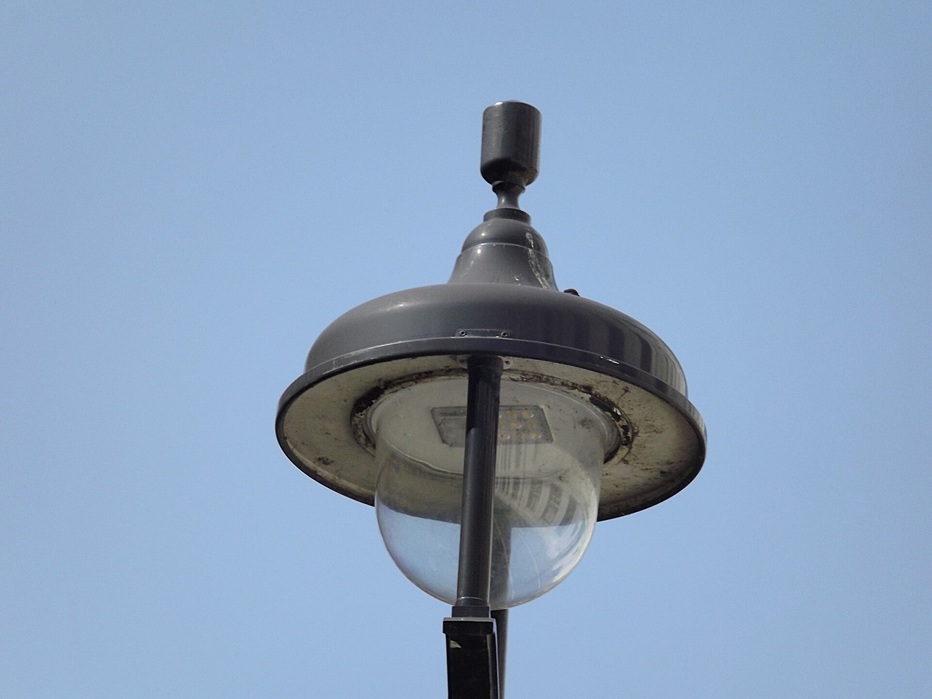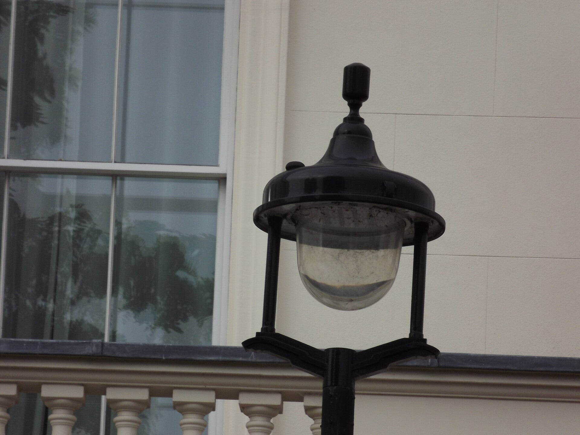 It (and the other column along this road) are fitted with the LED version of the DW Windsor Small Grey Wornum.