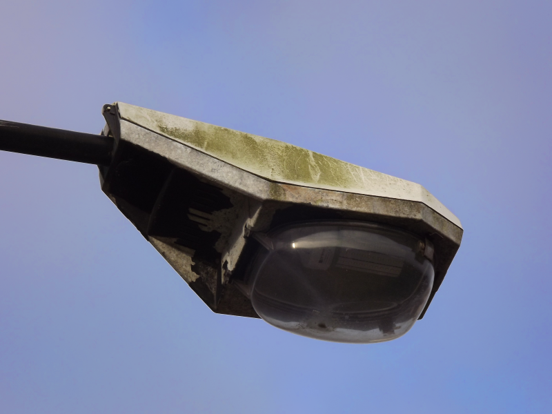 The lantern's frame is made from die-cast aluminium, and is covered by a fibreglass canopy. These appear to be the Kappa 1s, retrofitted with LED cobs although presumably they ran 50-70W SON before.