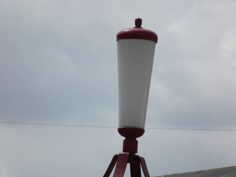 The catalogue number of these lanterns is unknown, but based on the numbering methods in catalogues listed by Simon Cornwell, I would give an educated guess that it is something similar to Z8444, or Z8440. They were advertised as the Post Top Decorative Lantern for Street Lighting. These could run 4x40W MCF tubes, with an opal Perspex diffuser, and the base and hat crafted from copper.