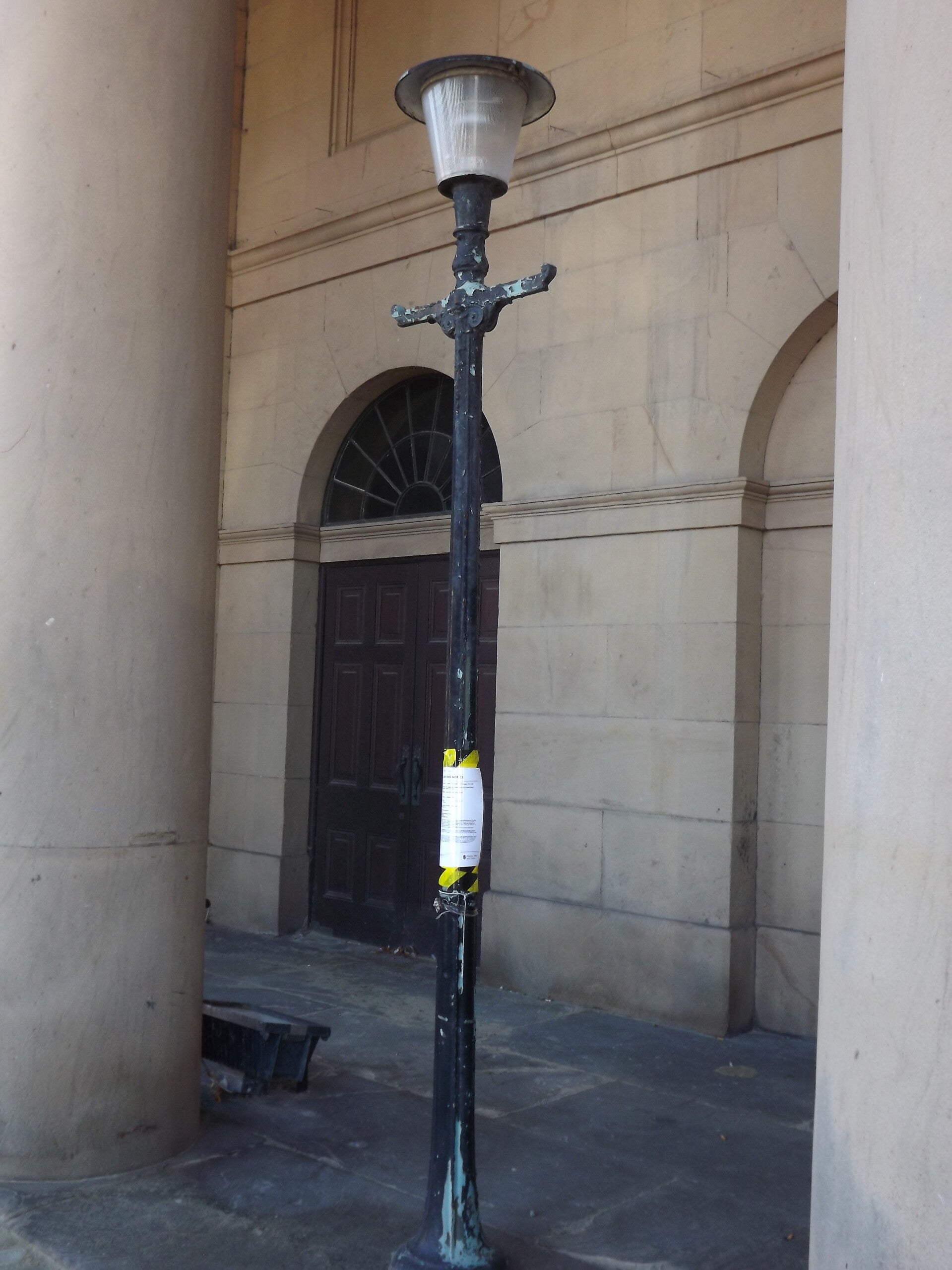 This next example is mounted to the column using a post-top adaptor, and is marked with a battle-scar in the form of a chunk missing from the hat.