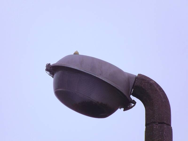The first example is probably one of the last concrete columns in Tamworth with it's original side-entry lantern. This Z8896 features an acrylic bowl, which looks to have gathered the remains of a wasps nest inside.