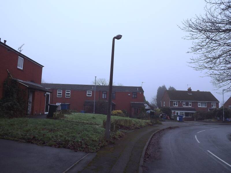 These lanterns were replaced in November 2024. It was believed that the last example of a Tamworth Z8896 was the one located on Hornbeam, but I was in for a shock! Walking back from a doctors appointment one wintery afternoon, I saw the distinctive green glow of a mercury lamp in the distance. The combined darkness and lack of leaves on the bushes were what allowed me to spot these, so I made my way around to discover not one, not two but three mercury vapour lanterns!