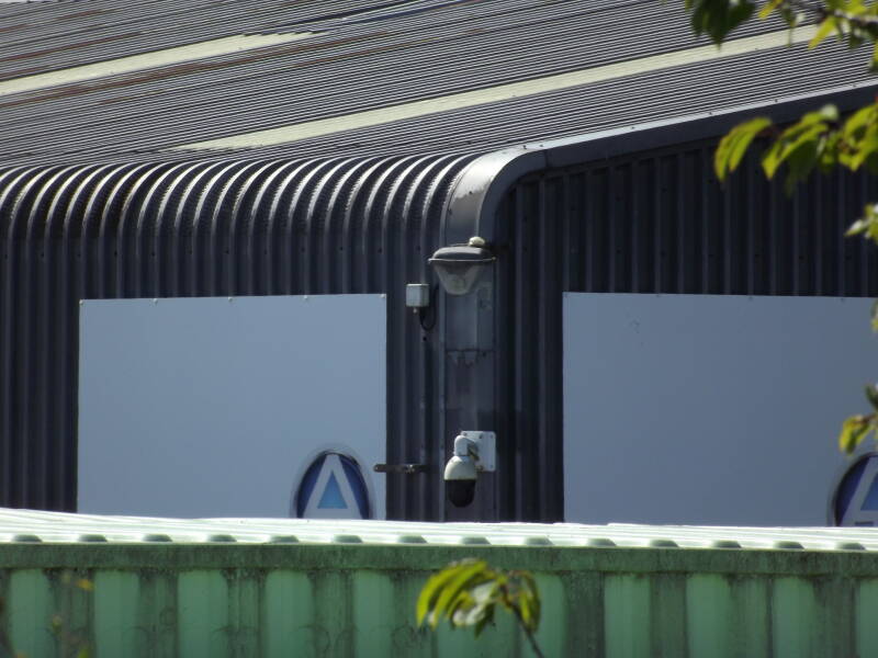 A site off Brick Kiln Lane features at least one Z9464 lantern, as photographed from a nearby footbridge. Even from this distance, the distinctive gear-tray is visible. The large circular shape within could be some-kind of LED cob lamp.