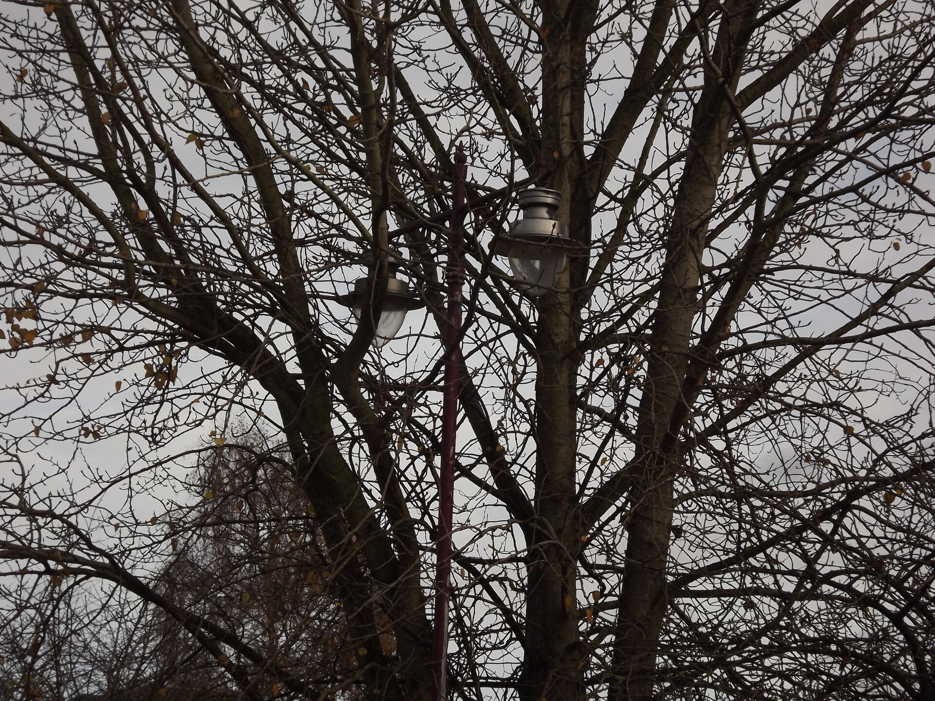 On my way out of the lot I also spotted a double-arm column featuring these lanterns; I don't envy whoever has to service those!