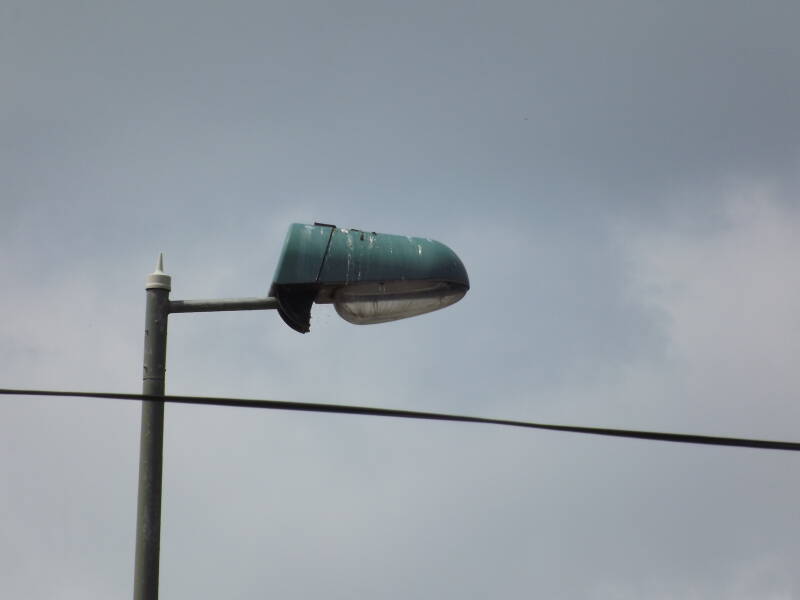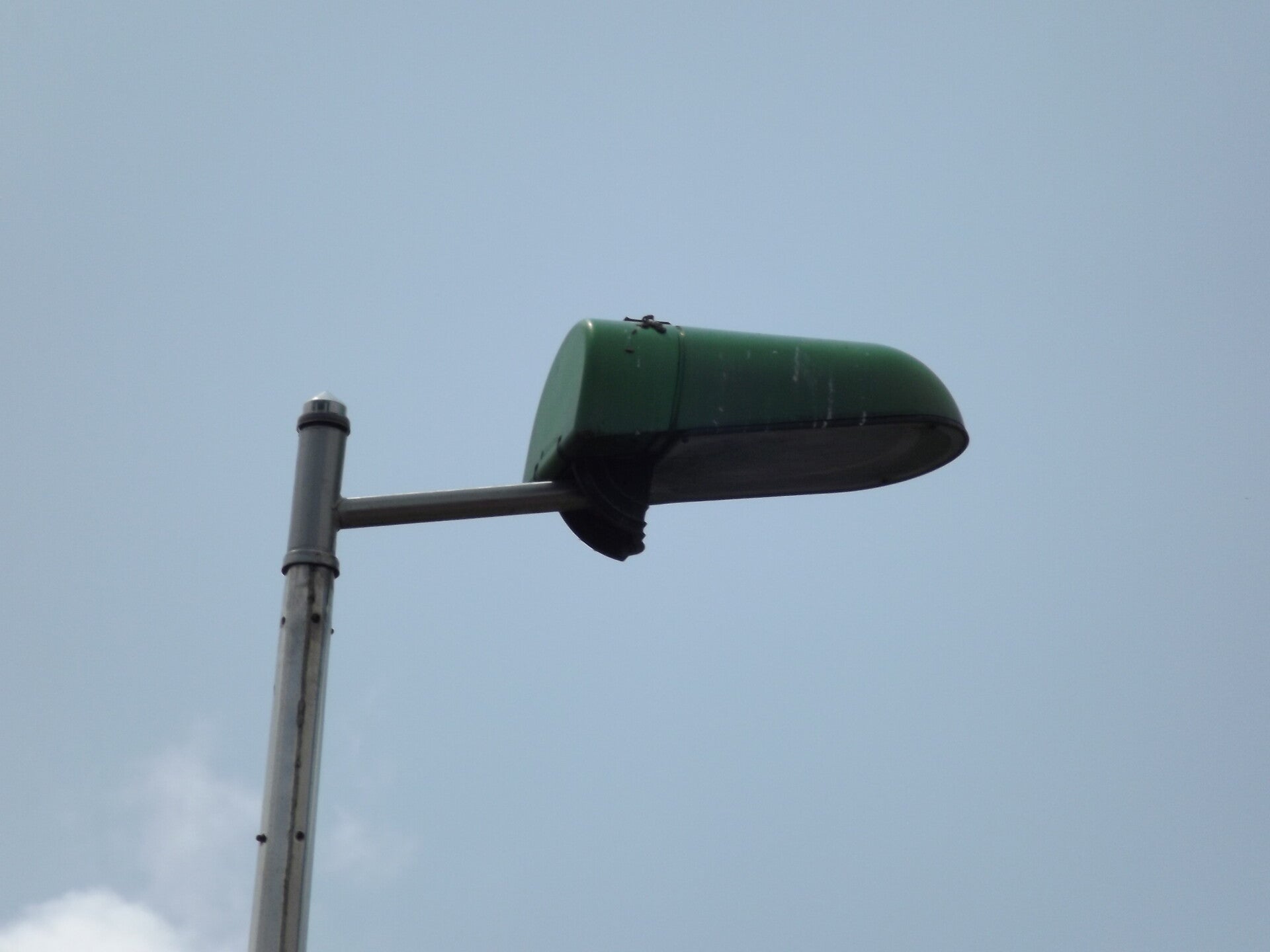 These lanterns remain undrilled for a photocell, but they do utilise them to switch the lanterns both on and off. NEMA cells are positioned on top of the columns' brackets, not the first time I've seen such a setup, but it's certainly on the rarer side!
