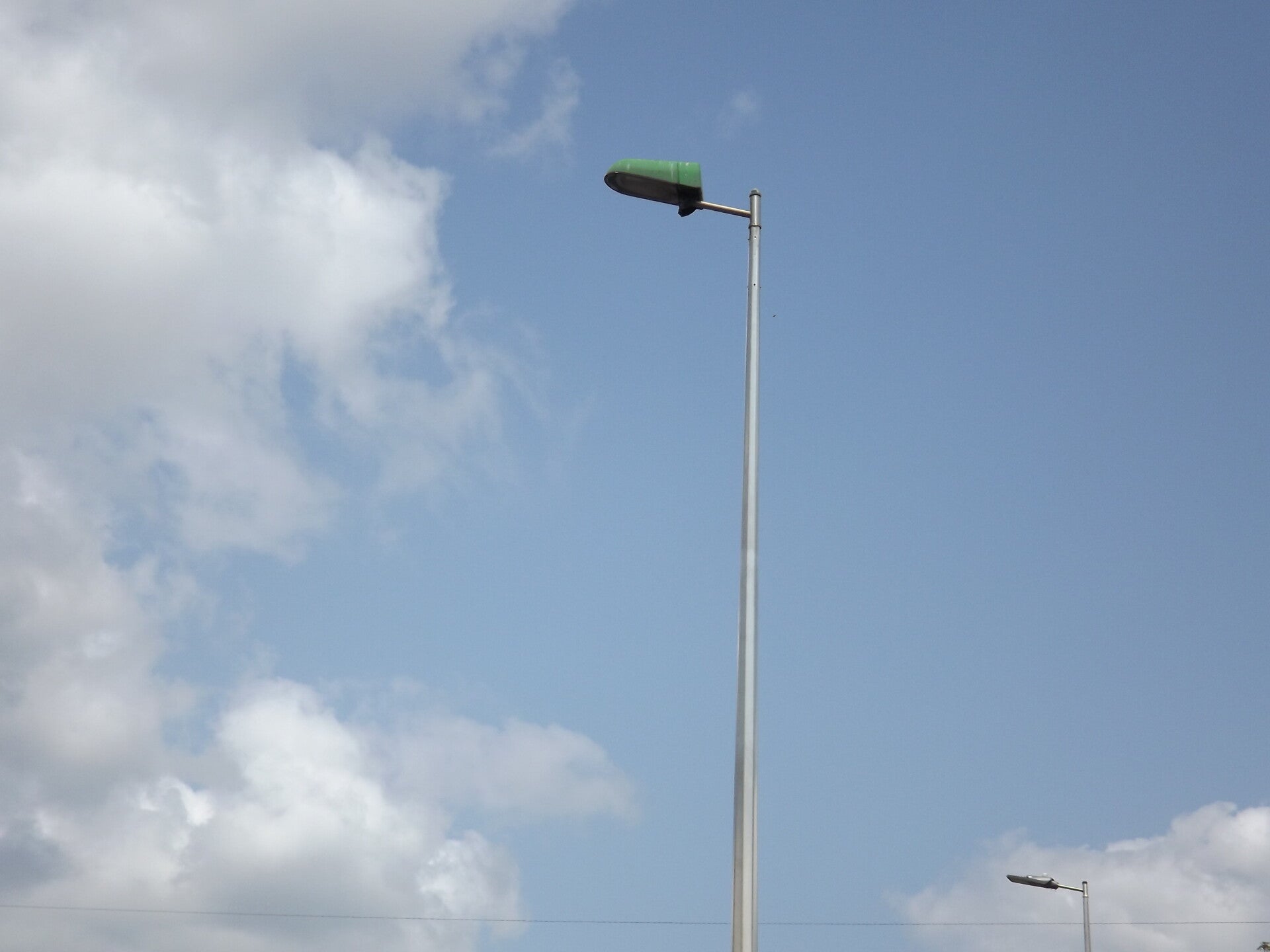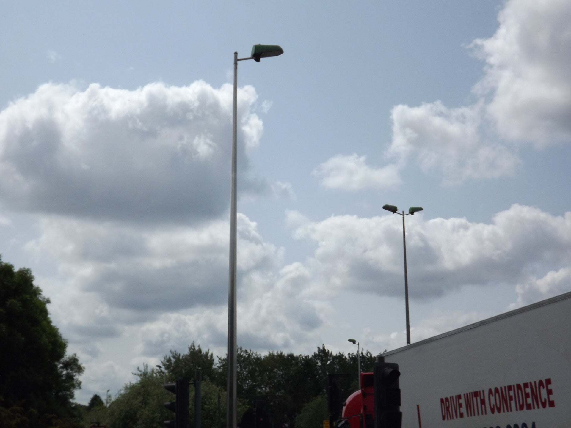 A large number of Mazda Modula G lanterns exist on a section of the A4040, these ones are flat-glass.
