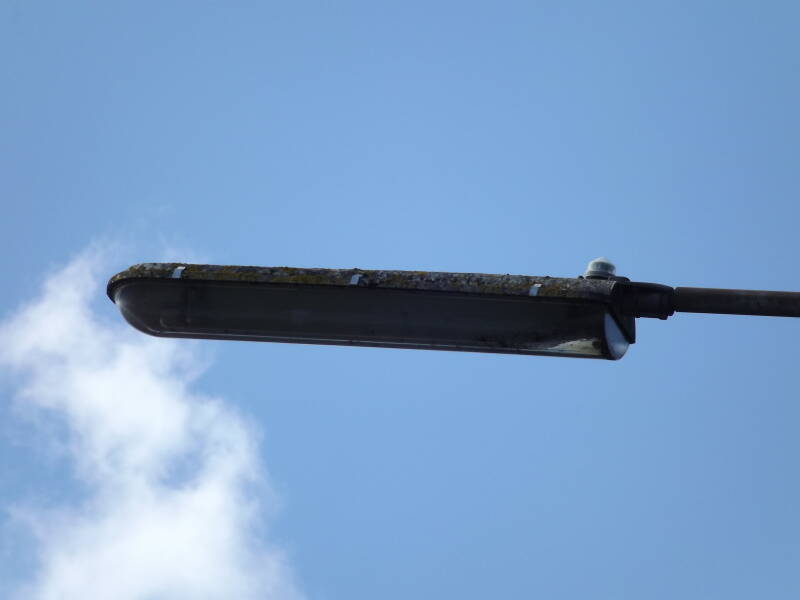 ...But at least it was still working to some capacity! The same cannot be said for this one, which was knocked down in late 2024. The lantern lay on the grass verge for a while after the collision, but sometime before this visit, it was picked up and the column was cut down.