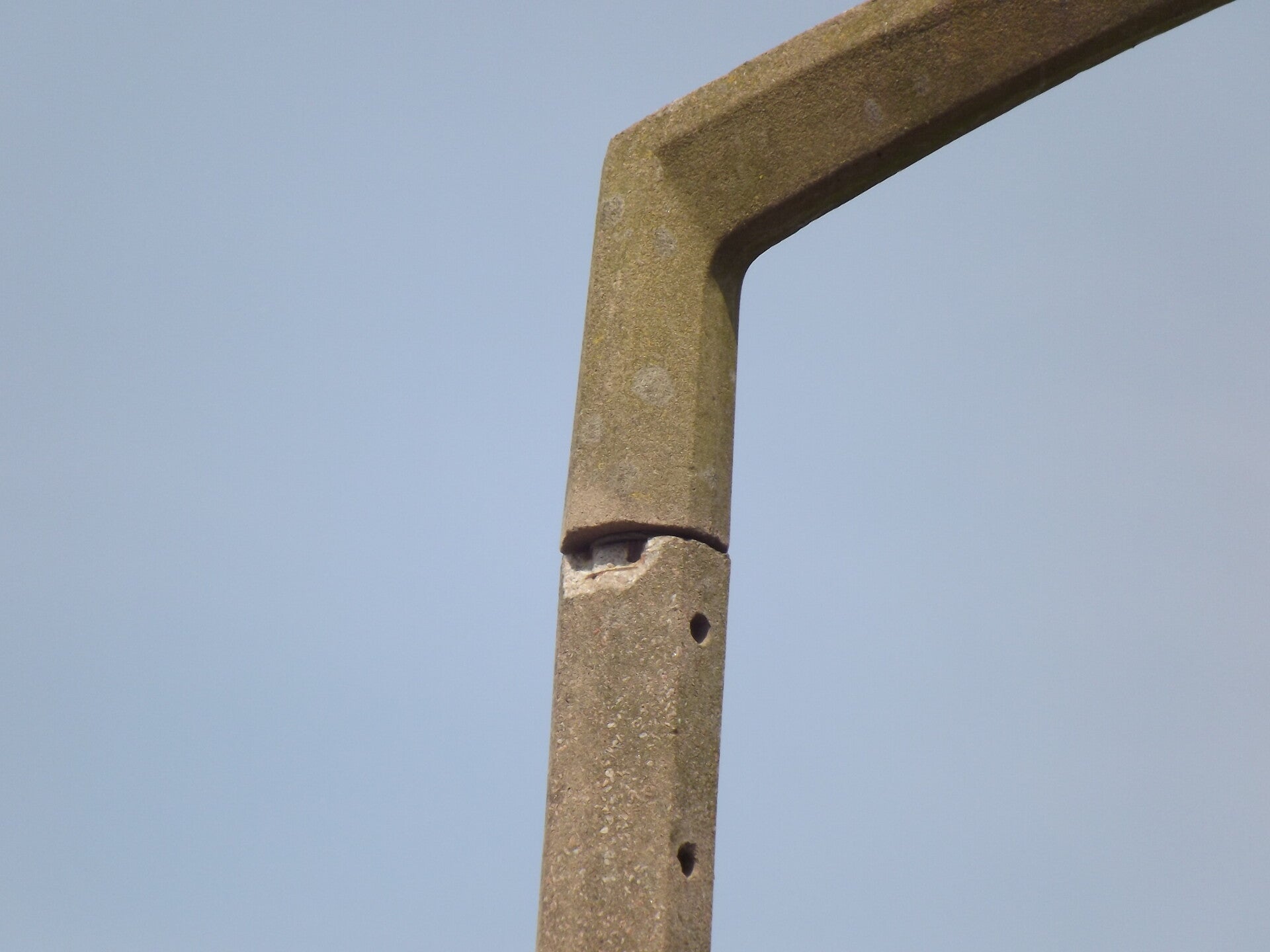 Column T13 was the next installation to support an MA90. It had suffered some light damage around the base. Columns T8 to T12 were also missing! They were likely Mk.1 MA90s that were removed when the junctions to different sites were constructed. Old column T7 is still visible on maps, with new column T7 having been moved across the road, now supporting a Holophane V-Max.