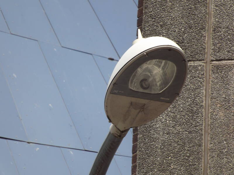 This lantern was also sold as the Philips Milewide. The SRS421 was the medium-sized Milewide lantern. They were created for the use of 50W-150W SON-T, up to 250W CDO-TT, or up to 140W CPO-TW. They were rigid-aluminium in construction, and thus were very reliable lanterns. They were mildly-common, with examples seen scattered about the UK.