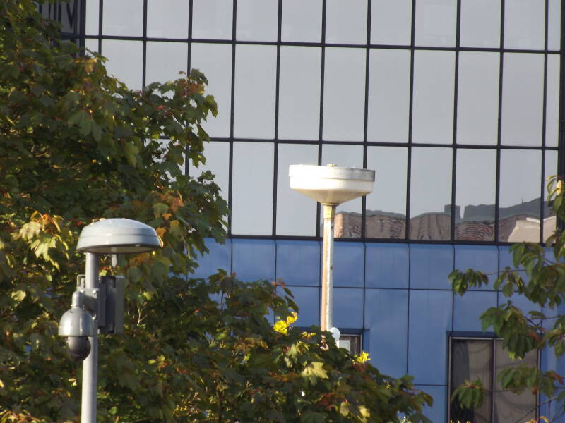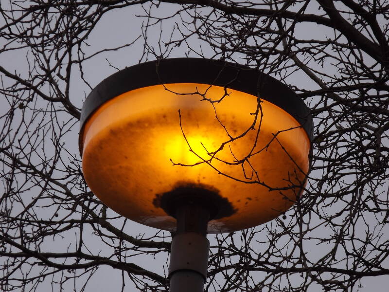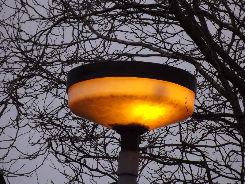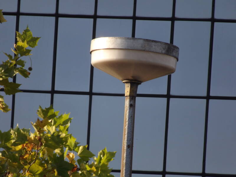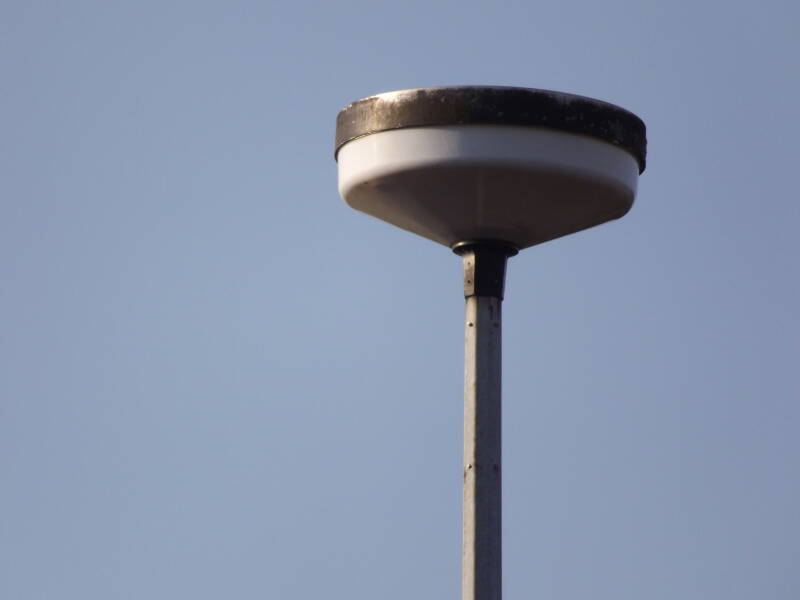 A Phosco P222 was spotted along Cambridge Street, column 17. This was a stunning discovery, as the installation was day-burning at the time! I believe this is a SON example. Only one of the lamps is burning, if there are more than one.