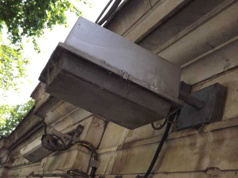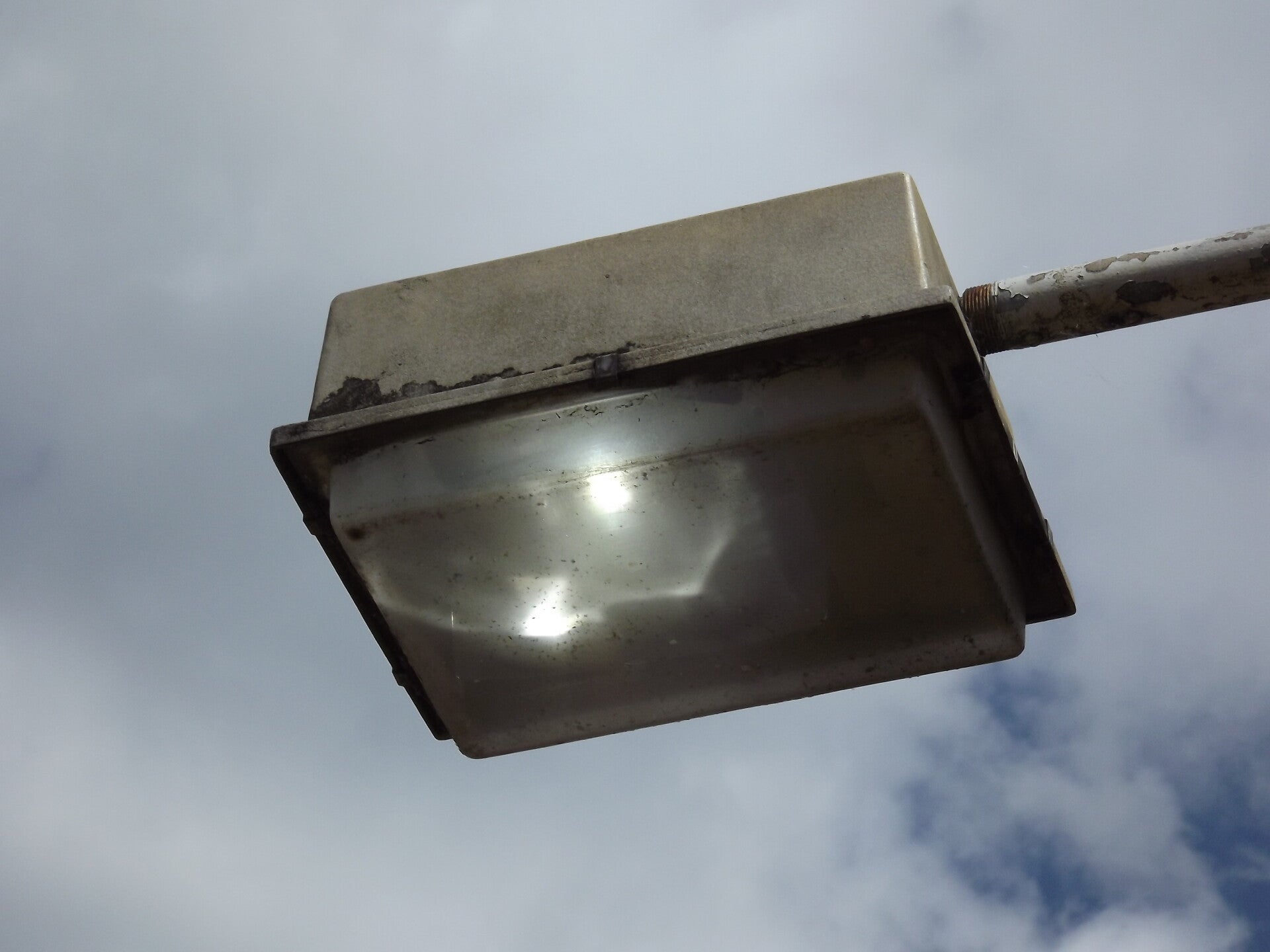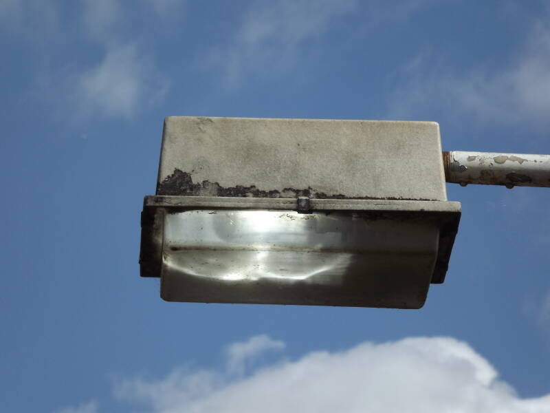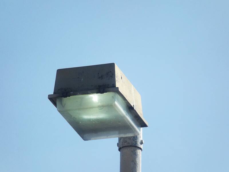Most of these actually seem to be day-burning. Whether this is due to any fault, or perhaps intentional due to manual switching is unknown. This one runs a metal halide lamp: