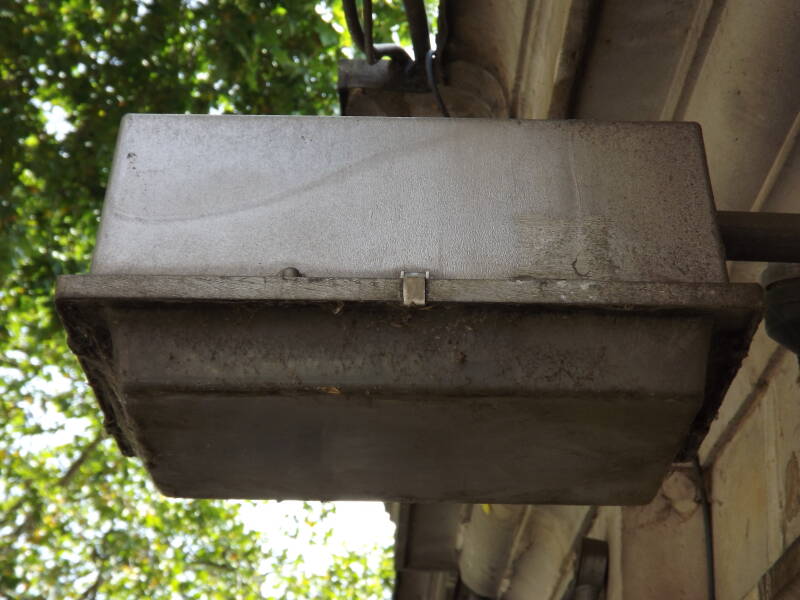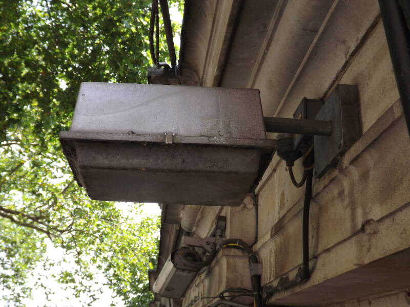 The Phosco P392 was a shoebox-style lantern for: 70W-110W SON or 80W-125W MBF/U ES (P392) or 80W-125W MBF/U 3BC (P392/1). They could be mounted side-entry, post-top (with adaptor) or catenary (soffit). These were rarer lanterns, not seeing much wide-spread usage across the UK, but a few areas did (and still do) use them.