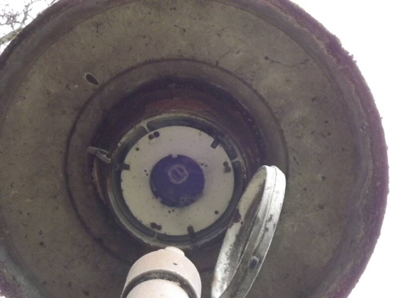 The second one of these is in identical condition, both the bowl and refractor missing, with the ring hanging open. This column appears slightly newer than the others; the Precinct was re-used.