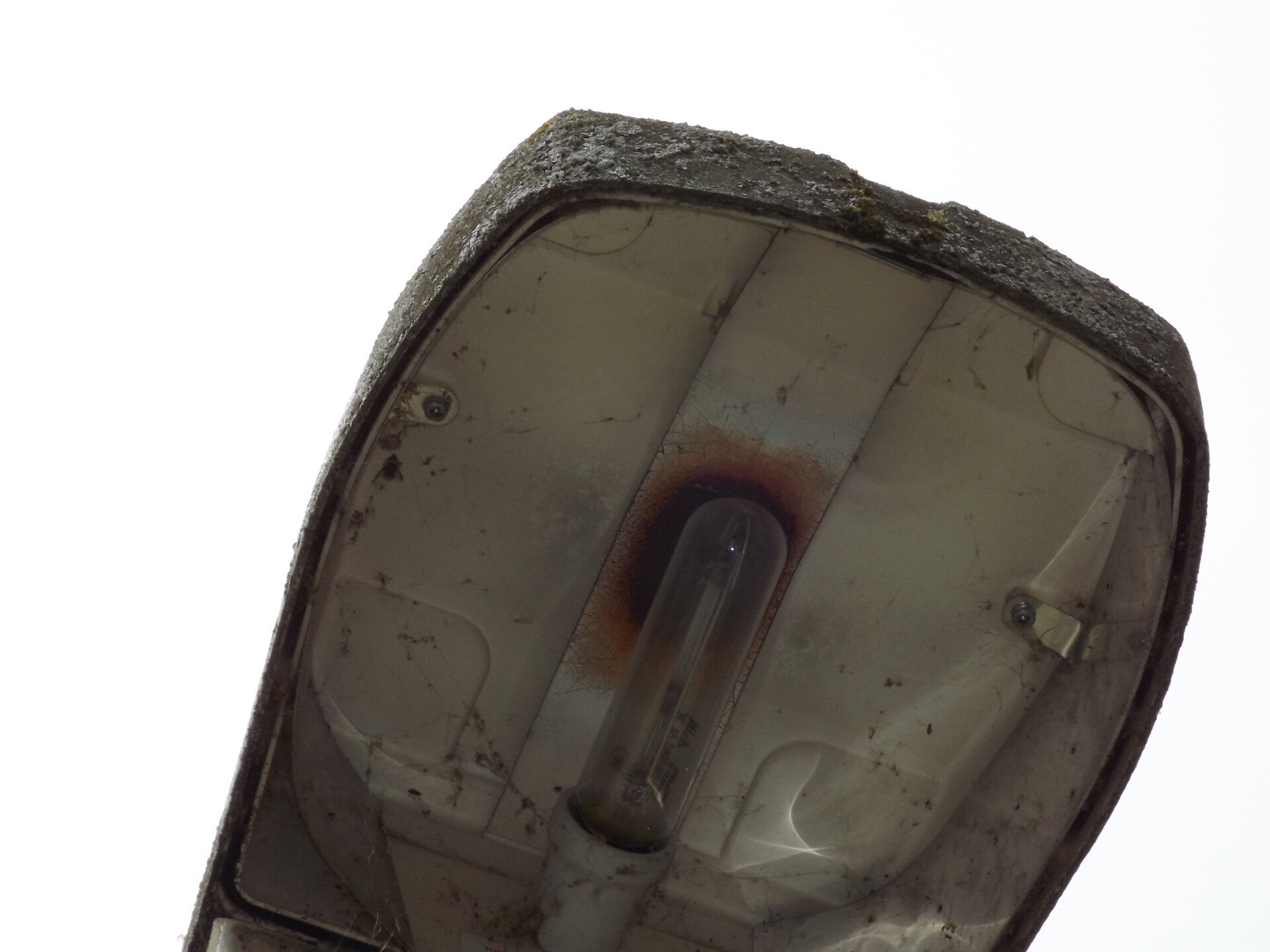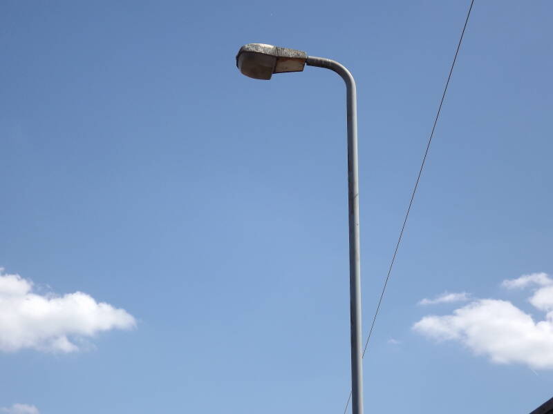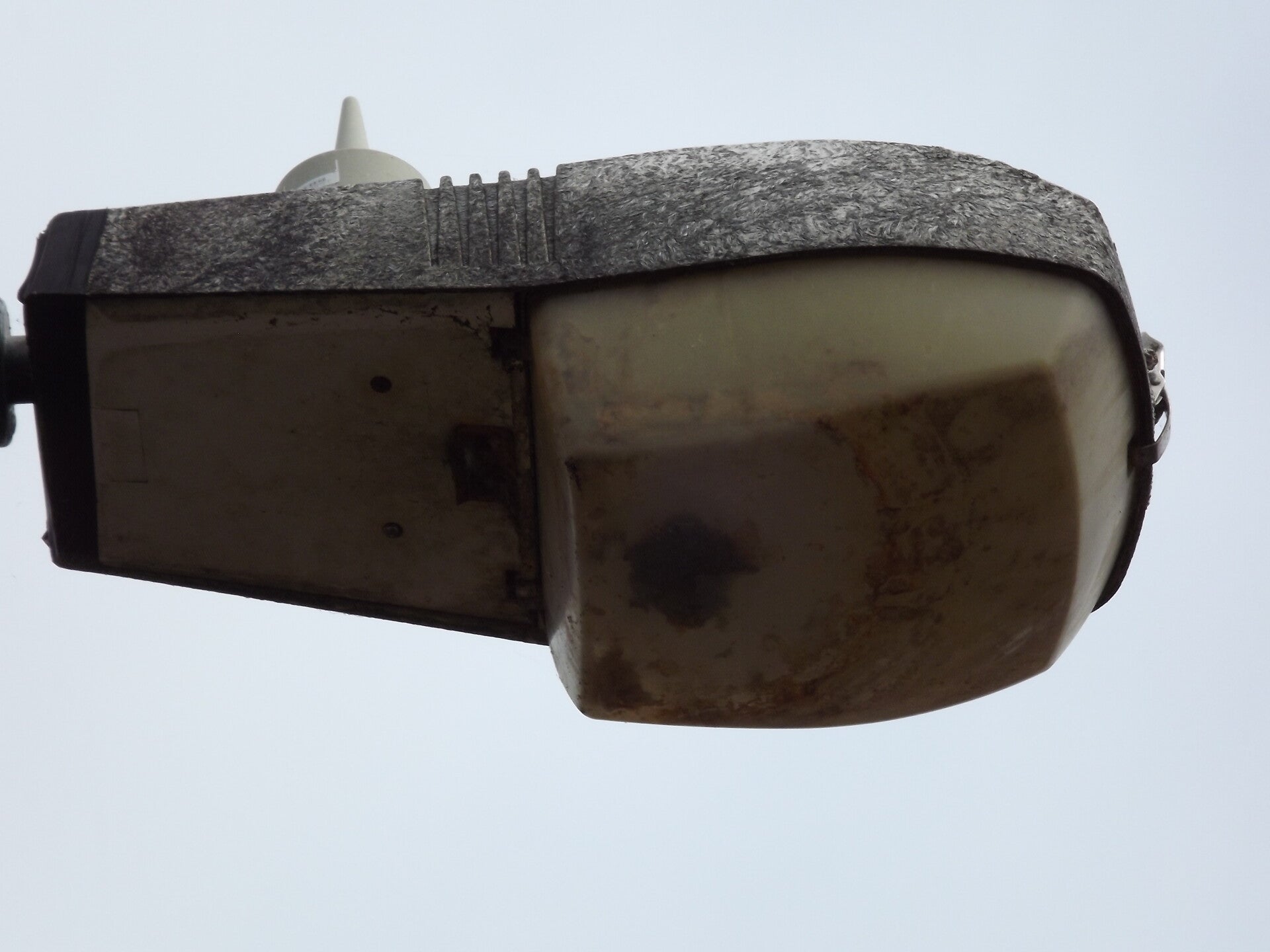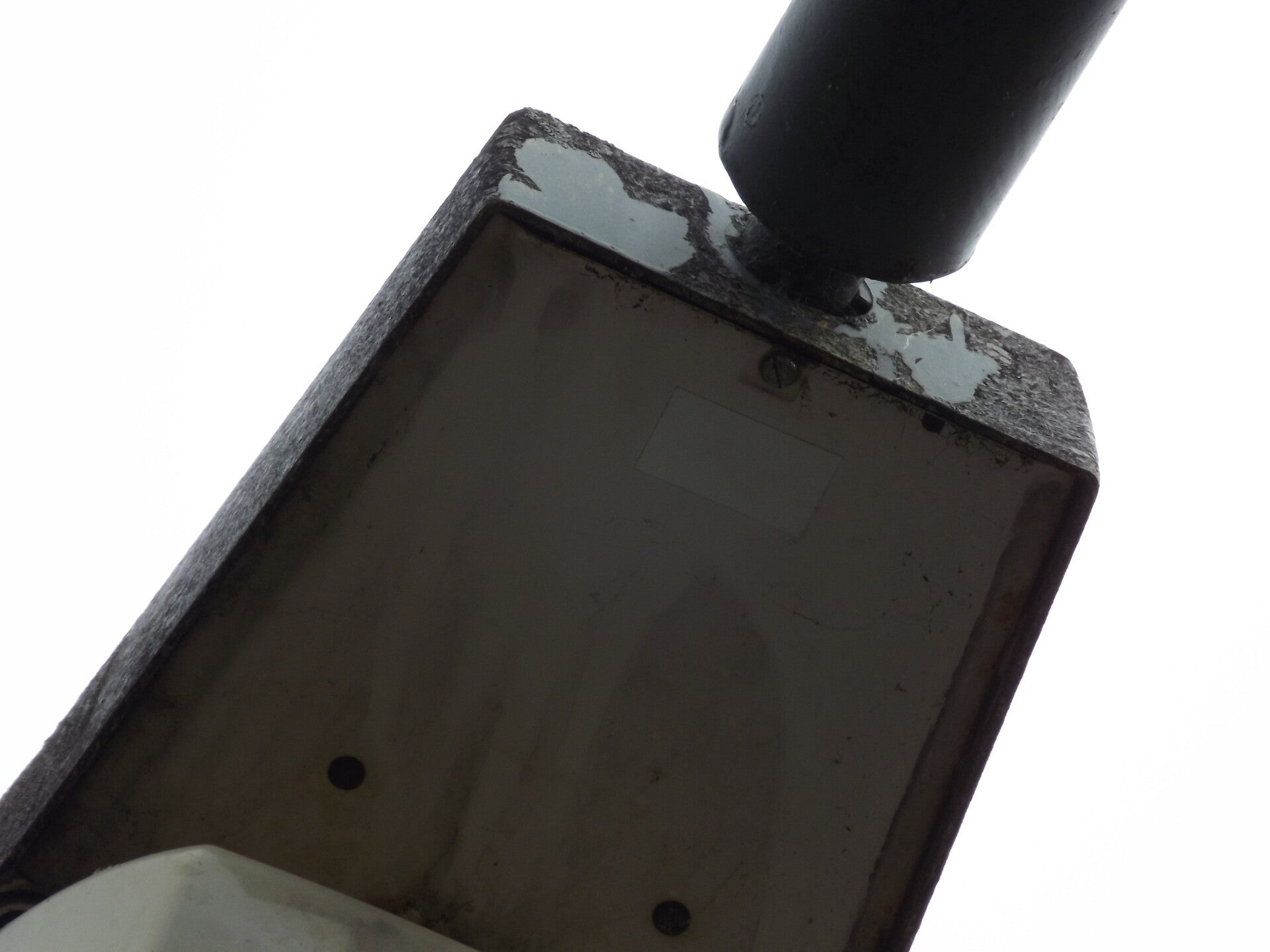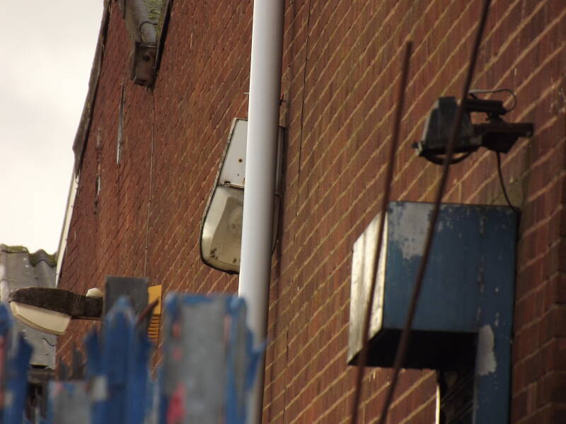 This precarious CB-70 was spotted on a building in Parkway Industrial Estate. Comparing these to the earlier wall-mounted example indicates that (at least the CB-70) may have been sold for security lighting, and this purchase came with a wall-bracket.