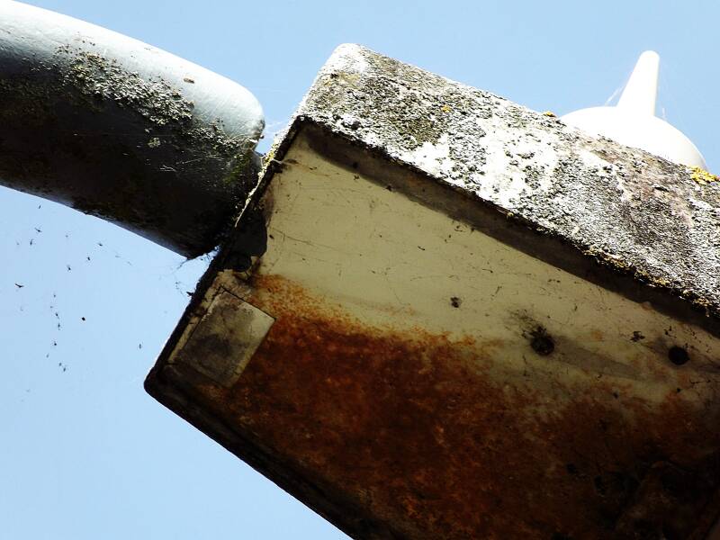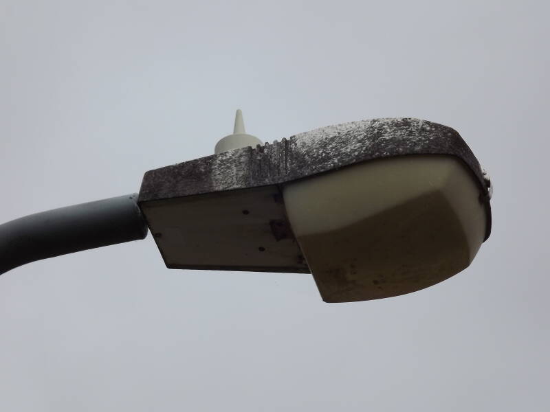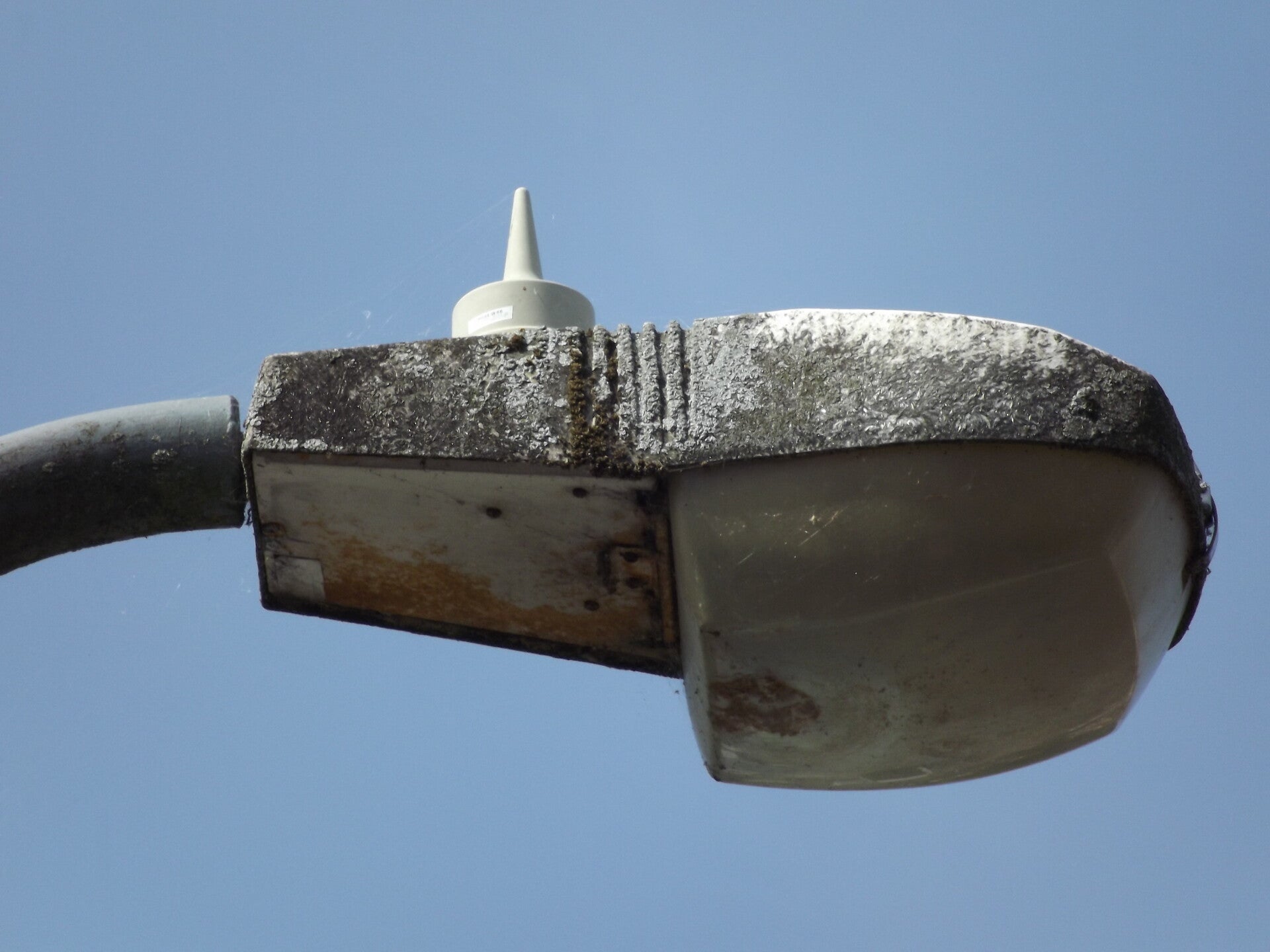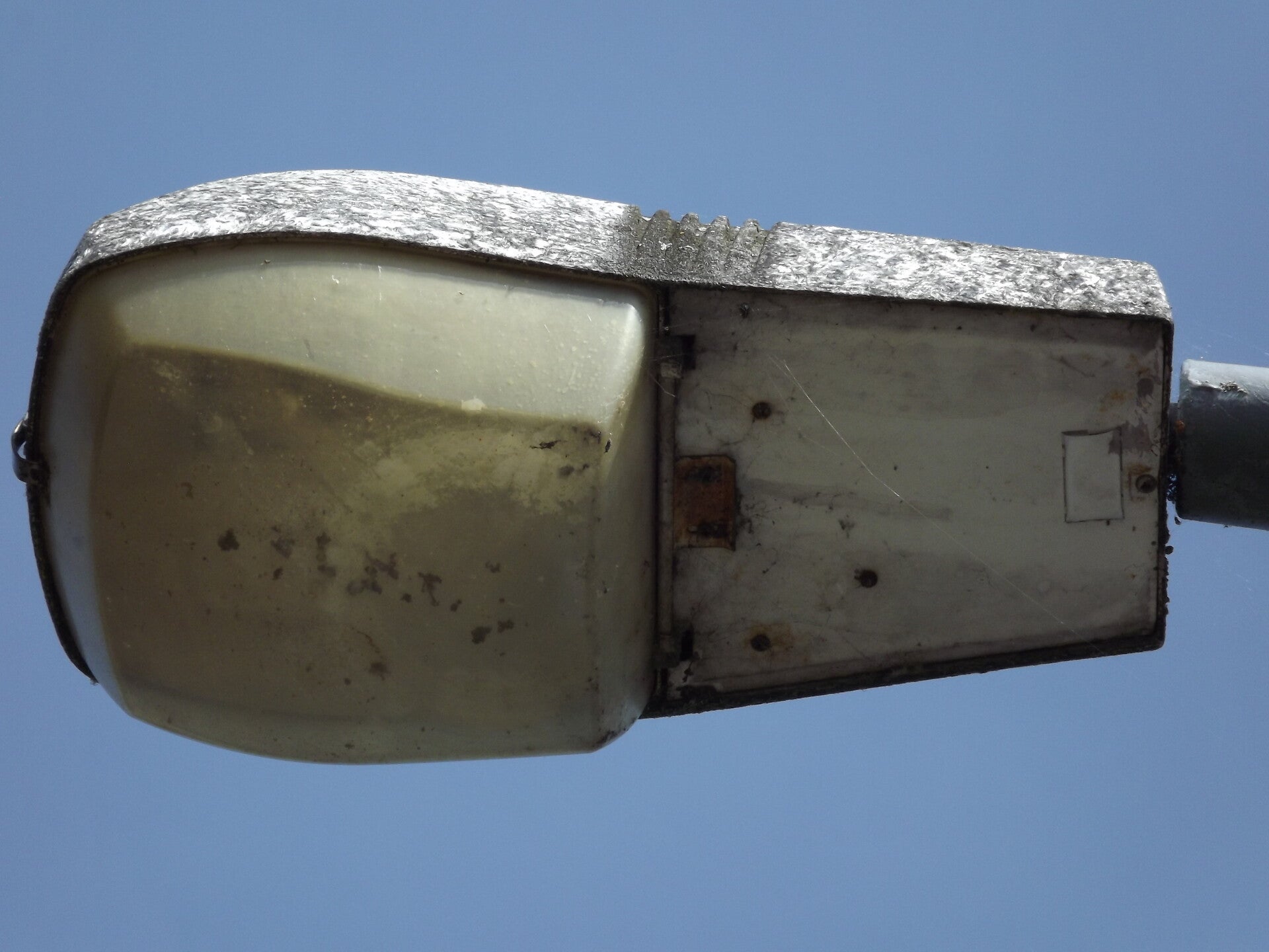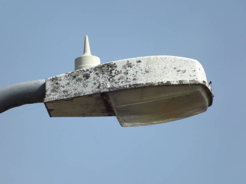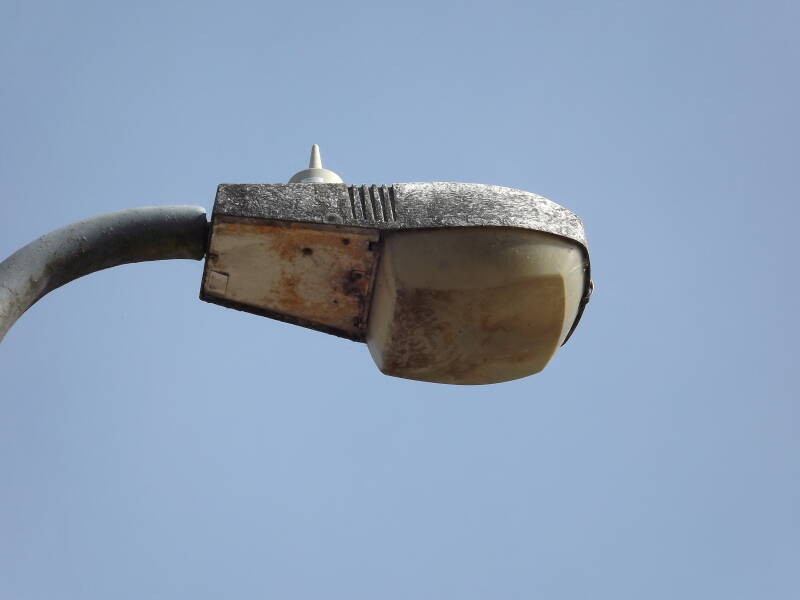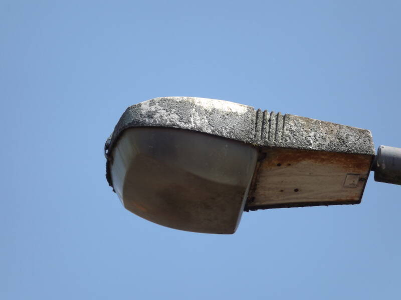 This precarious CB-70 was spotted on a building in Parkway Industrial Estate. Comparing these to the earlier wall-mounted example indicates that (at least the CB-70) may have been sold for security lighting, and this purchase came with a wall-bracket.
