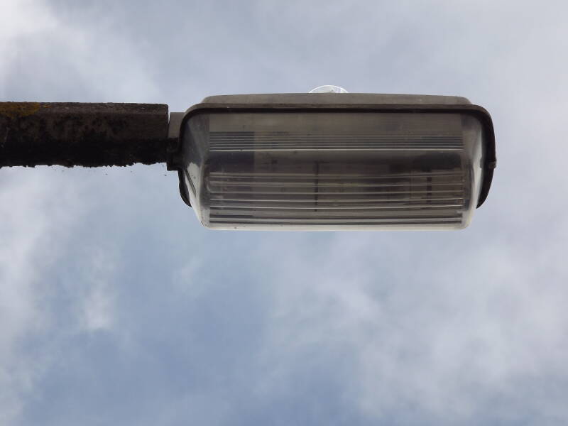 It used to run 26W SOX-E, and doesn't work. As you can see, the column around the bracket has begun to crumble. you can just about see the steel pipe within.