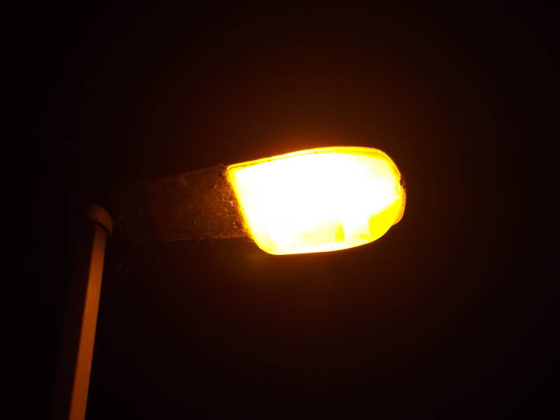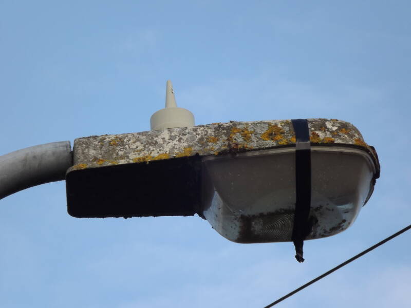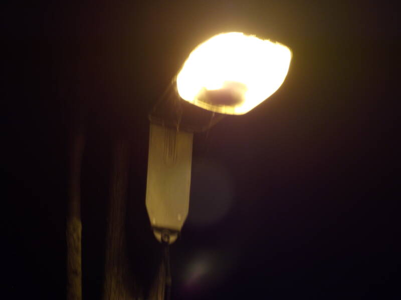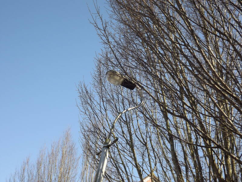 This doesn't stop the lamp from shining brightly at night-time though! (Very brightly considering it's mounting height, though this was taken as it warmed up)