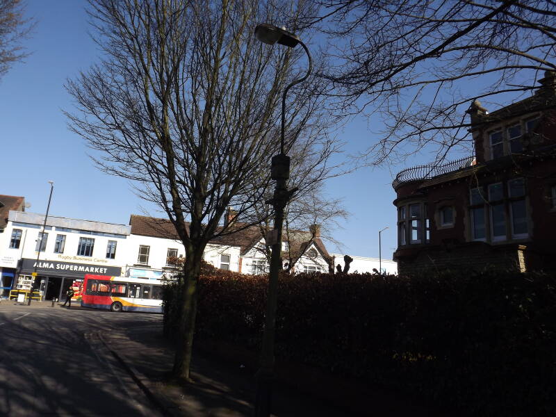 Common in Rugby are cast-iron columns with various side-entry lanterns fitted. In most cases these are Urbis Opalos or Thorn Beta 79s. This installation is located opposite a pub on Albert Square.