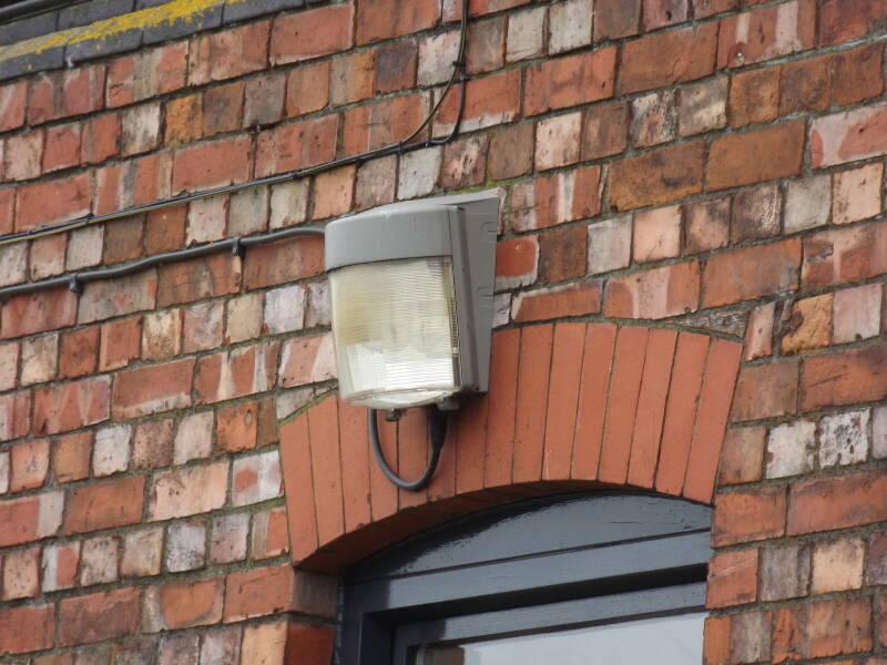 The Piazza II is oddly common around Crewe. This particular example runs what looks to be 70W SON-E, located on a Unipart Rail building along Gresty Road.