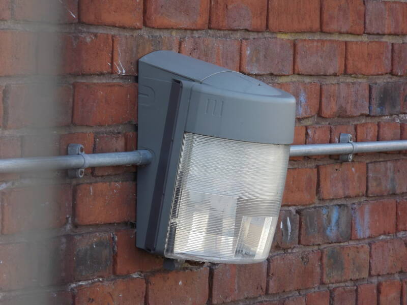 At the back of Crewe Engineering and Design UTC's Car Park is a small locked-off area for storing bikes. It is lit with Piazza IIs which look to run CFL lamps.