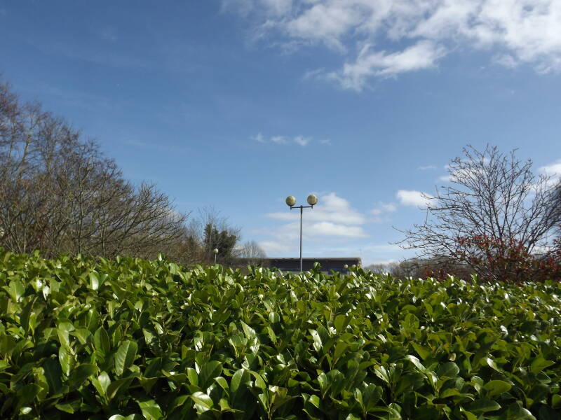 Off Flour Mill Way, are countless Thorn S500 Spheres on twin-arm columns. Some of these columns are fitted with LED floods.