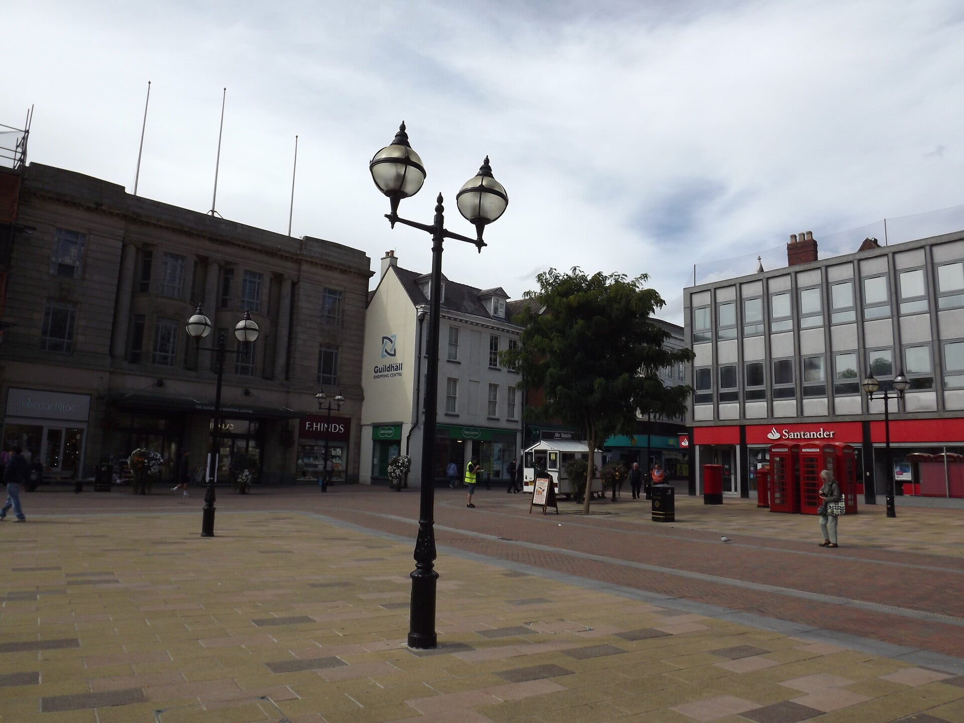 Lots of Victorian Linfords litter Market Square, Stafford, where most are located on twin-arm brackets.