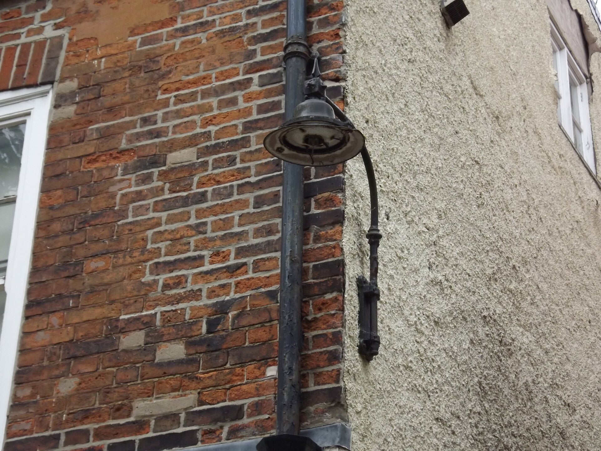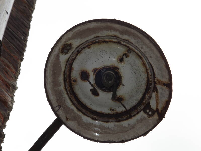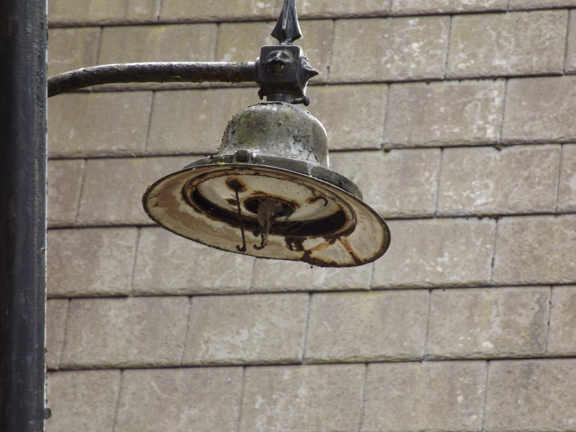Nowadays, only the metal parts of the lantern remain, any and all glass is long-gone, minus the skeleton of what appears to be a GLS lamp.
