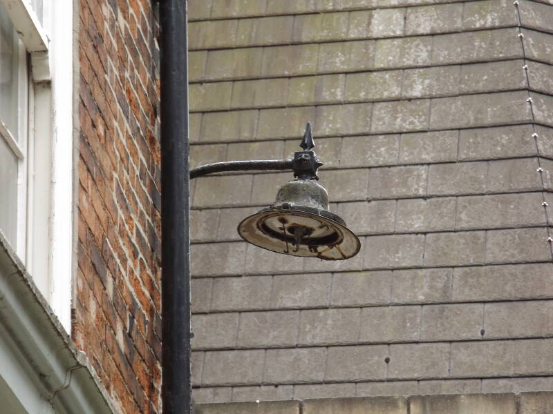 St Peter's Church Walk is home to two top-entry fittings. One, an ELECO Royston for 300W-500W GLS lamps, and the other, a Wardle Arran. I'm not sure where the supply cable on this example terminates. On the Royston, a Wardle cut-out box is present, so this may also have had one.