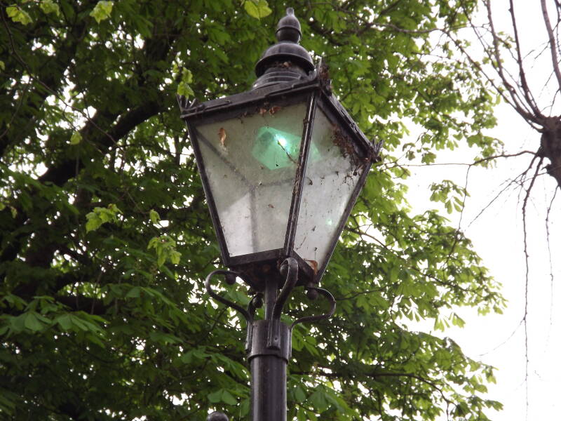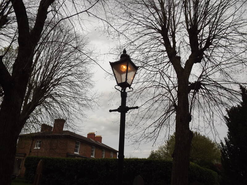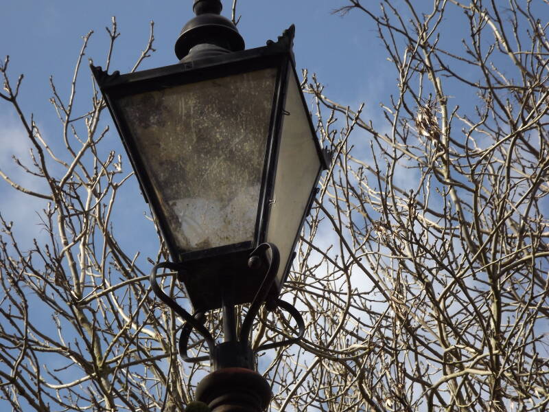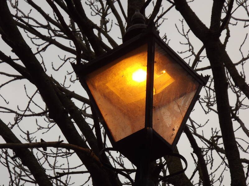 This Windsor lantern can be seen in the town centre, opposite the entrance to Ankerside. The sunset behind the camera gives the illusion that the lantern is day-burning, when, in fact, it is not.