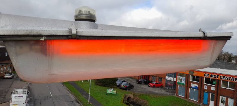 Much like the Philips MA50s, they're mounted on 8m Stanton and Staveley concrete columns with large outreach brackets.