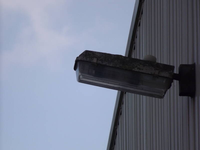 MI36s were also sold as security lights when they were on the market, so lots of businesses still have them, even if they don't work anymore... This one actually runs 26W SOX-E, unusual considering they were made longer for 55W SOX.