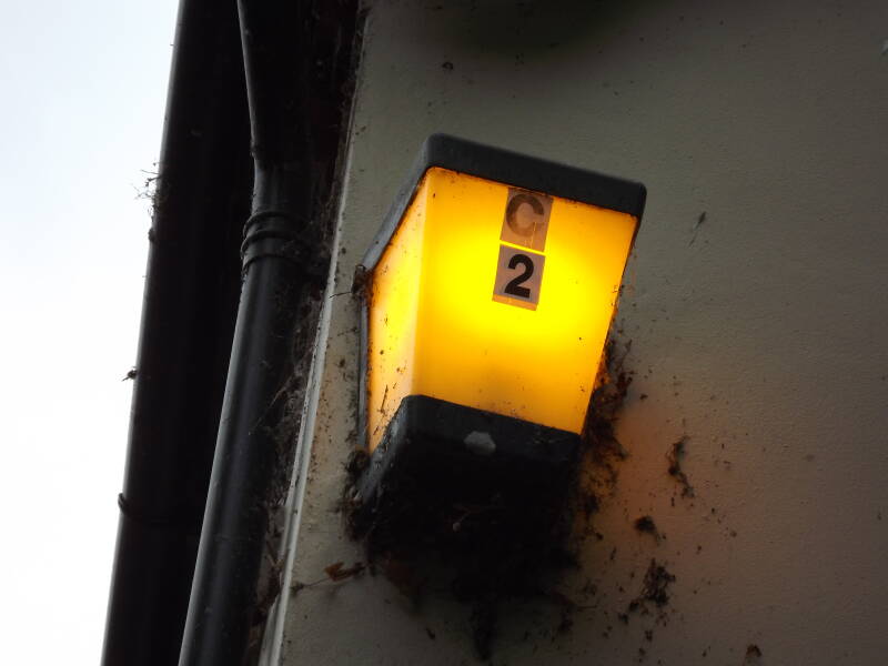 You may notice throughout Lichfield City Centre's main streets, there's a lack of lampposts. Well, take a good look on the walls of the buildings! GEC Z5760s are scattered about the walls. They currently run (presumably 100W) SON lamps, though they might have run something such as SOX or MBF originally. You can see the supply cable entering the bulkheads at their base. Thank you to AgentHalogen_87 for telling me about these fixtures!