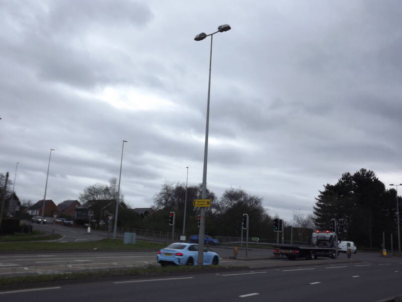 The WRTL Vectra is most commonly used in its 150W SON form here in Tamworth, most commonly on the A5 as a replacement for failed Philips Trafficvisions. Only about 3 or 4 now remain on the Tamworth stretch of the A5 since the central reservation's double armed columns had LEDs installed in 2011, and Highways stopped replacing failed lights on this road. This one however is easily accessible, covering the opposite side of the same pedestrian bridge that This Urbis Axia 1 lights up. It is believed to run either 100W or 150W SON.