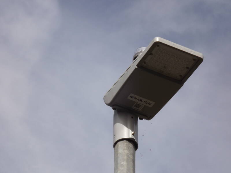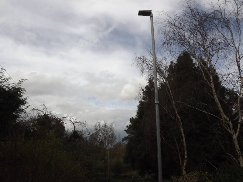 The very end of Hodge lane is a 6m hinged column which previously supported an Urbis Altra 2. It was installed alongside another to replace two leaning GEC Z9580s. Later, the Urbis Altra 2 was changed to a Holophane S-Line.