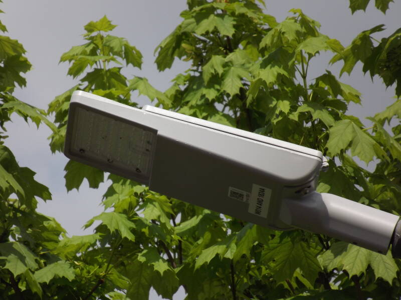 The lantern was a 14W example. The installation was replaced in late-2024, and a brand-new black S-Line was installed post-top.