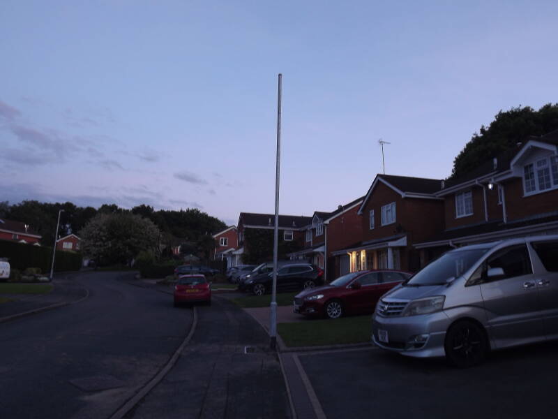 Between the 3rd and 21st of June 2024, the old columns along Sandy Way (previously supporting a mix of Philips MA90s, Eleco GR100s, GEC Z9554s, GEC Z9454s and Thorn Alpha 9s) were replaced with 10m steel columns. These columns were fitted with S-Lines.