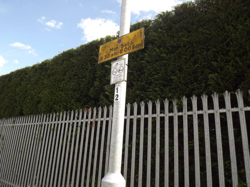 The previously-mentioned cycleway has a rather unique feeder pillar. It is the base of a Stanton 1405 column, which would have originally stood alongside many other Stanton 1405s. When they were removed in the 1980s, the decision was made to leave the base of this one to be used as a feeder pillar.