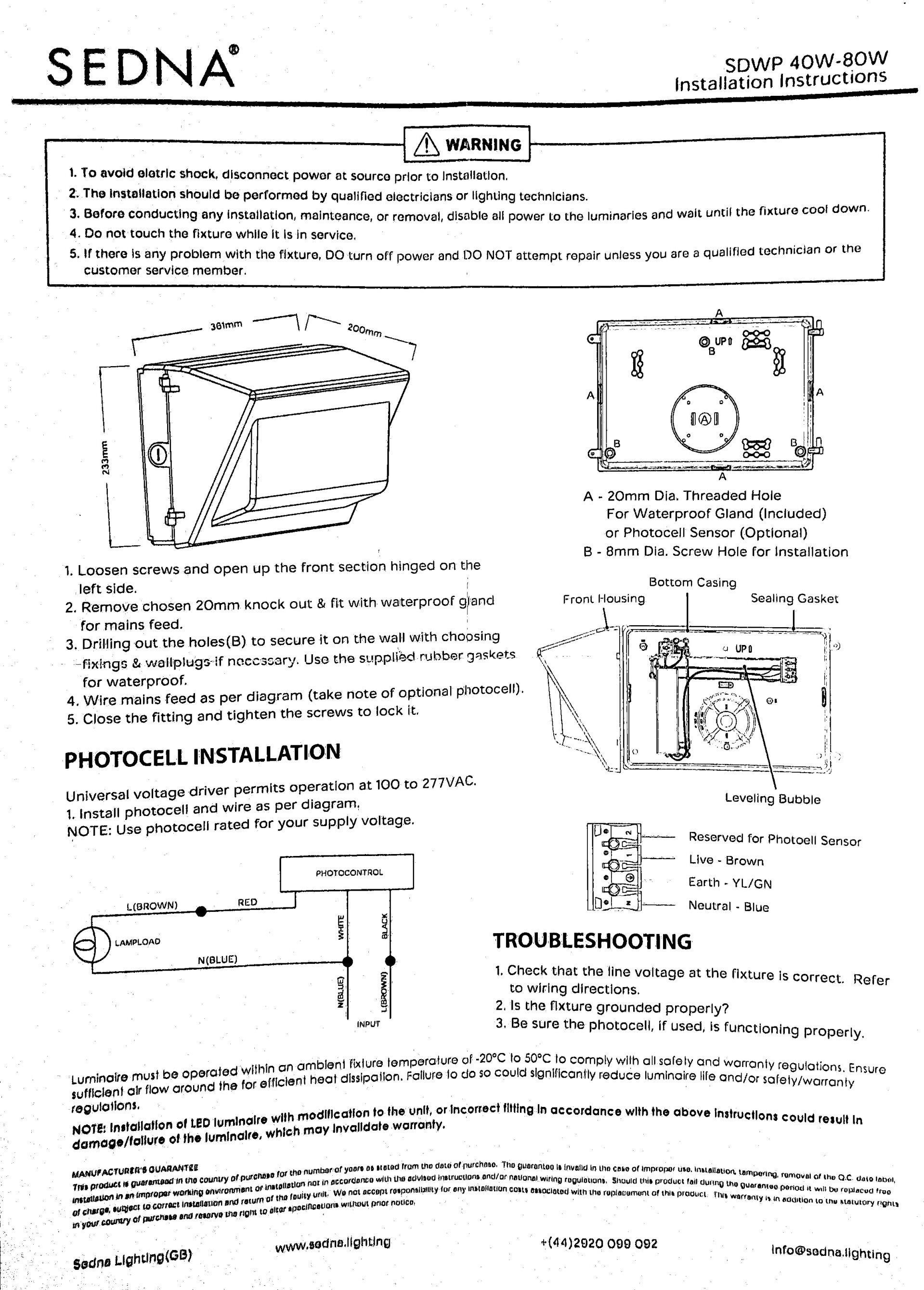 Sedna SDWP 40W-80W Installation & Safety Instructions