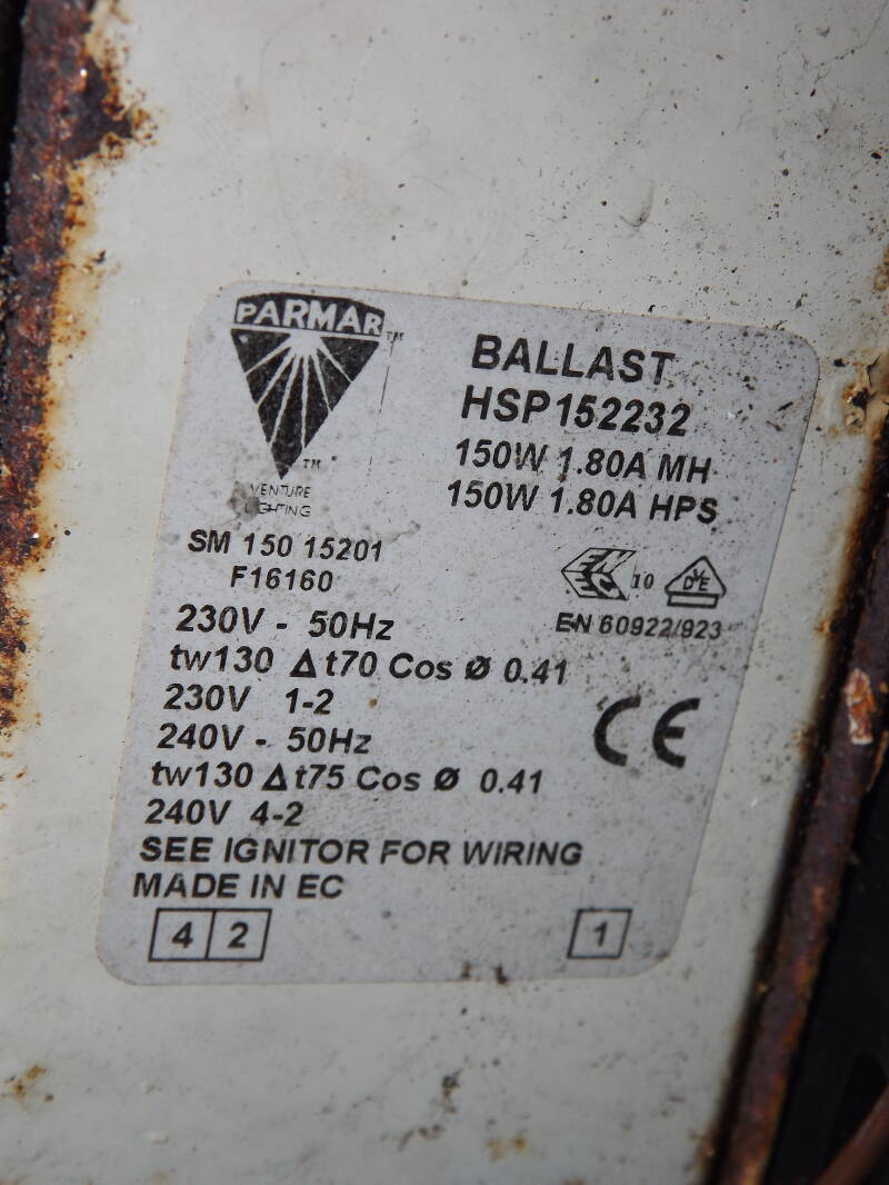 Every single gear component has a date on it: the ignitor - 16/05/2002, the ballast - 03/06/2002, and the capacitor to between 17/12/2001 and 23/12/2001.